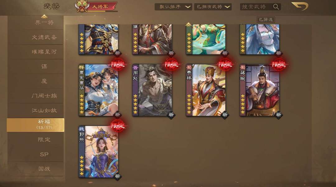 全扩差8王朗周群三娘二袁关索谋孙坚界张春华!蒲元族钟琰族吴苋(双传)族荀谌(动)张华夏侯玄文鸯(传)神张角+蒋琬费祎(传)周处(三动)二曹(动)冯方女(琳琅动+动)潘淑(动)龙凤(限动+传)曹爽(动)曹纯(传)张琪瑛(动+传)徐荣(限动)曹婴(限动+传)+胡金定(动)孙茹(双传)李婉(传)丁尚涴(动)陆郁生(传)等!全国战全五阶!至臻册+琳琅基本全齐!花好全动!