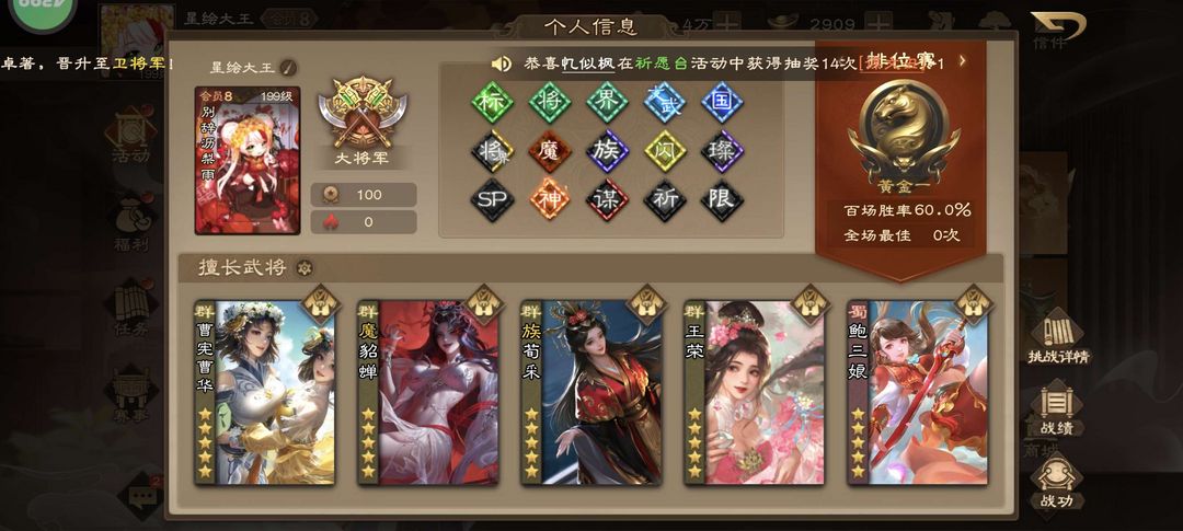 3小时起租,本人玩的少,不顶号,每日改密码,男强将仅最近2个月未获取,有老仙,祈福仅无二袁。