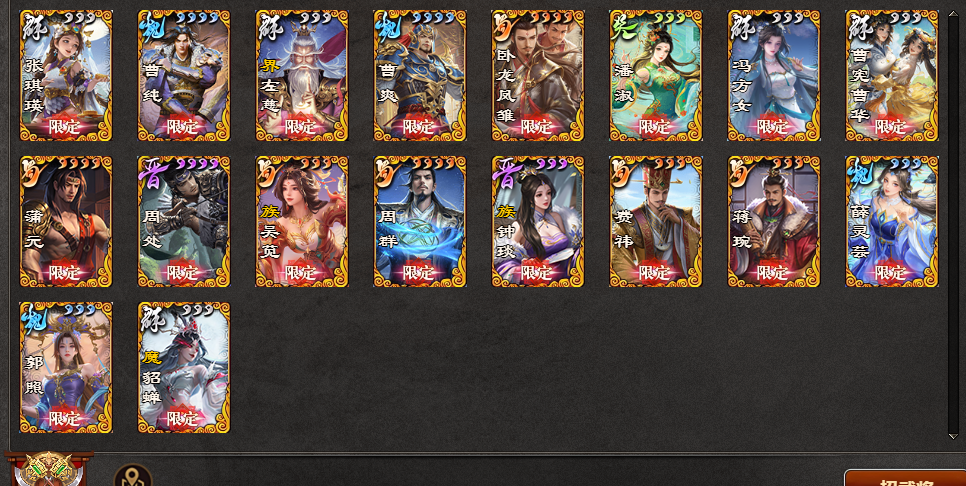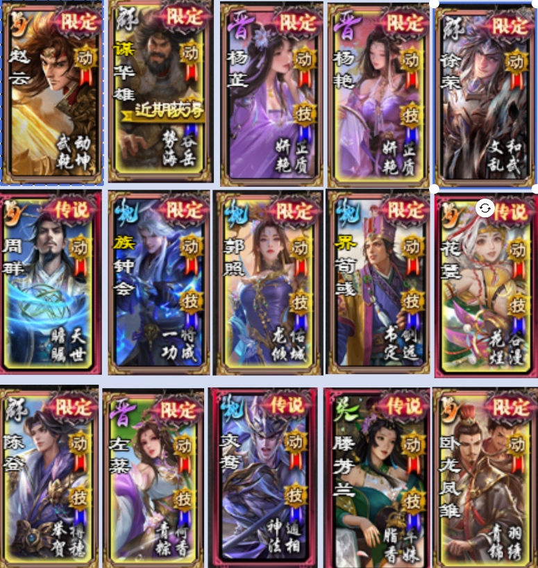 【大将军+蒲元周群+三魔+全武动九冲榜秀】506将全国战大将军+8翻15大18小祈福20祈愿+蒲元周群(动)族荀谌(动)族吴苋(琳琅动)夏侯玄张华文鸯(动)神张角(琳琅动)+魔貂蝉族钟琰郭照(琳琅动)薛灵芸(动)蒋琬费祎周处(限+双动)二曹(琳琅动)冯方女(琳琅动)潘淑(动)龙凤(限动+传)曹爽(传)二袁(传)曹纯(传)张琪瑛(双动)+族荀采(动)族荀攸(传)族王允王荣(琳琅动)+SP曹操(传)SP刘备(传)闪赵云族钟会(琳琅动)魔司马懿魔吕布谋姜维(琳琅动)谋庞统(琳琅动)谋关羽(三动)谋董卓(琳琅动)谋袁绍(双动+传)谋华雄(琳琅动)谋文丑陆凯丁尚涴(动)胡金定(传)董翓鲍信吕伯奢界徐盛(琳琅动)等!491五阶!1886皮肤100+限动49琳琅动!花好全动+谋定武动(9动只差关羽黄盖黄忠)文和华天华彩岁节全齐!27传说秀35.1万帅点!