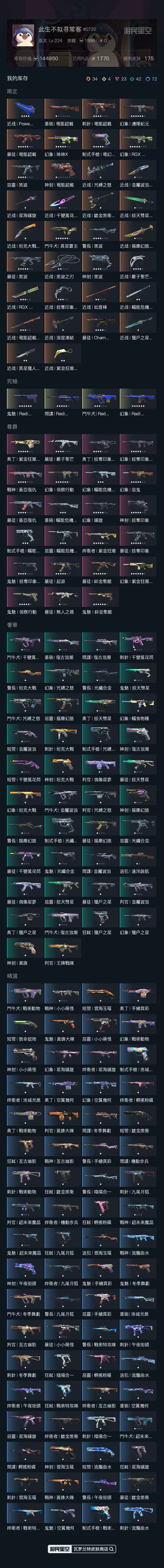 橙色皮肤34,红色皮肤23,近战武器应有尽有,账号隐藏分钻3