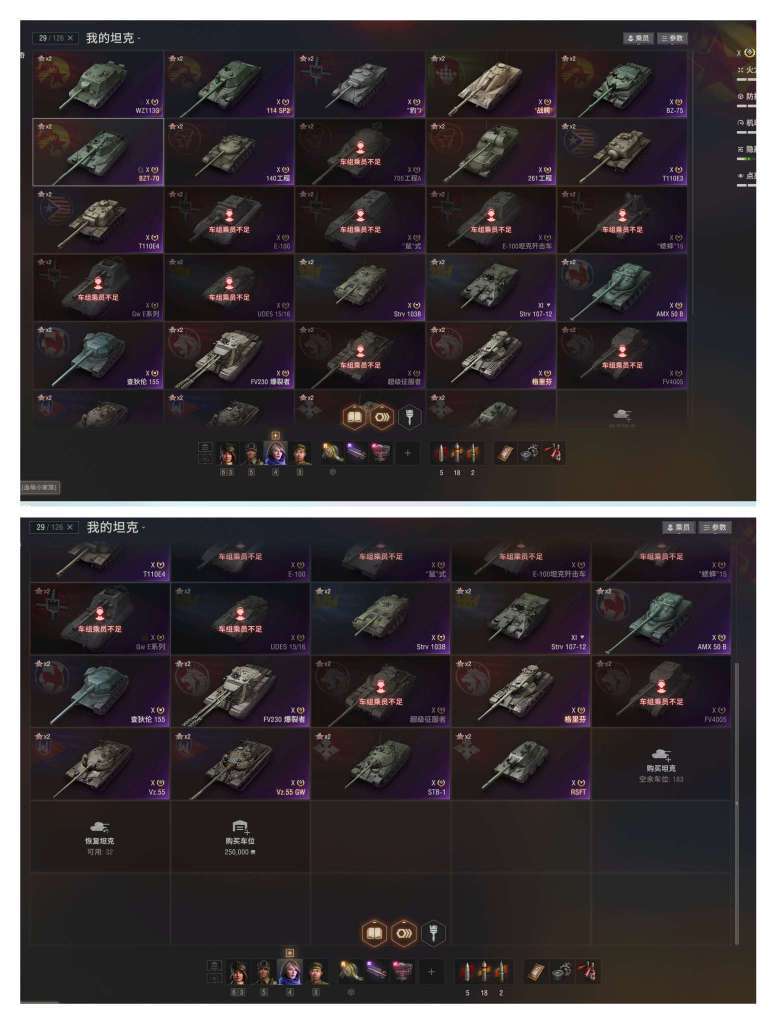 坦克世界组装车RSFT、箱子车出租。11级:strv-107。10级28台,10金6台:最新组装车RSFT,BZT-70,战鳄,格里芬,114sp,哥特勇士等。9金14台:E90,TBT,路易斯,DZT-159,752,金牛座,眼镜蛇,酋长原型,夏尔75等。8金42台:BZ-176等。