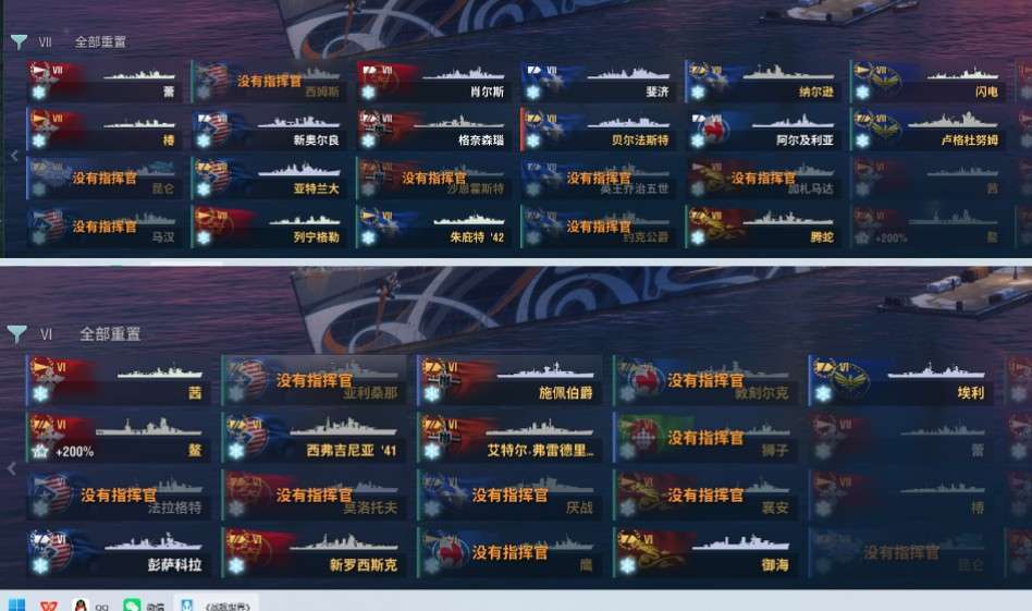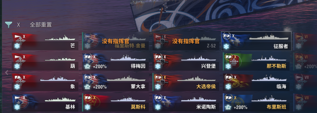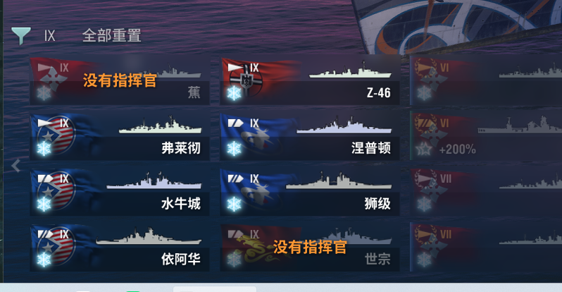 超级战舰(11级)4台:苽,鹏,孔代,安纳波利斯。等,10级船:16搜。9级10搜,8级32搜。