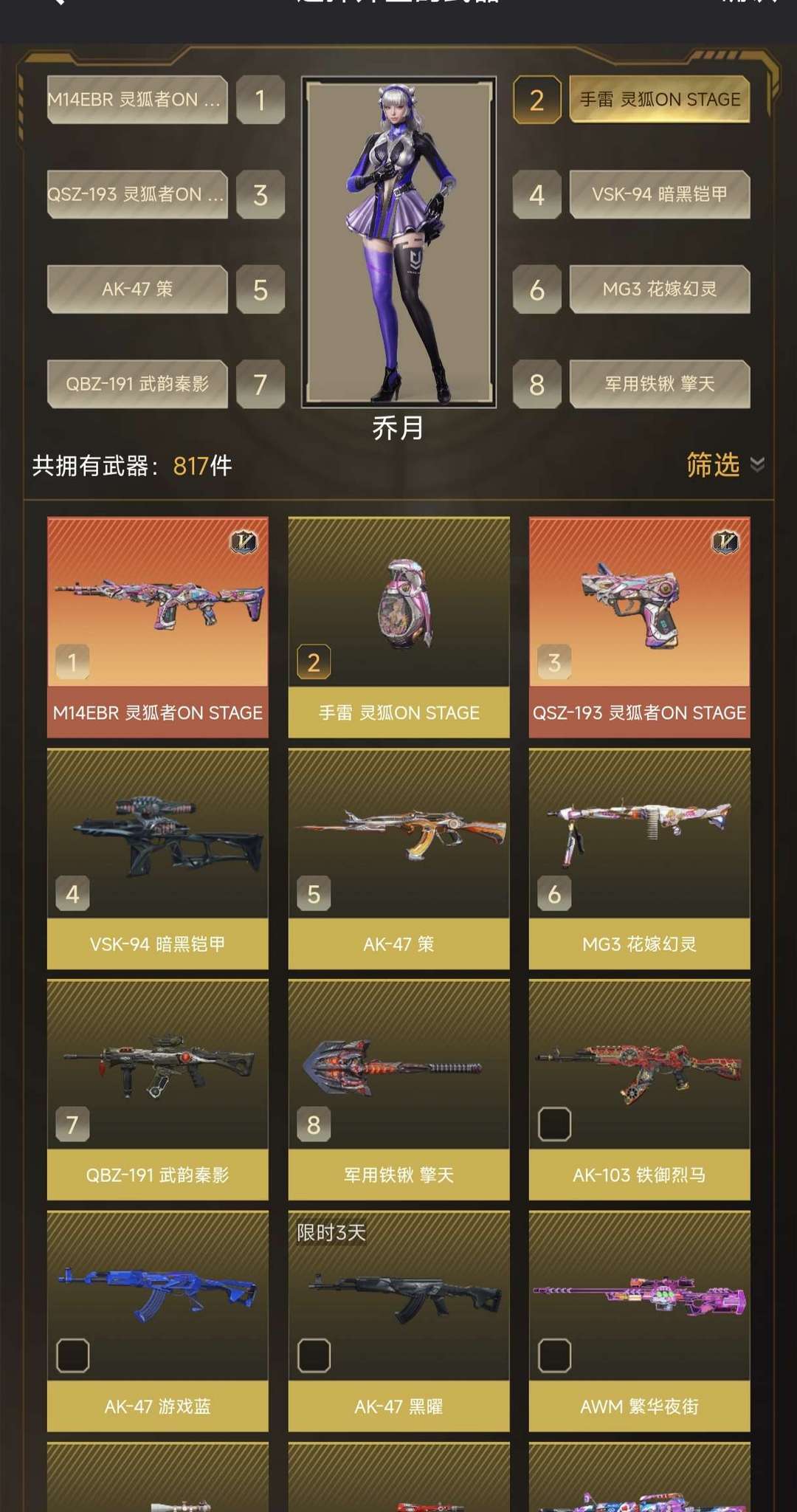五级神话皮灵狐小人枪+手枪,50+金皮+枪娘花嫁擎天雷神,阿飘+女警+太空人玄月生化满熟练~CFHD