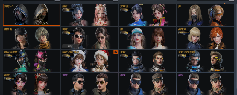 角色:波特 妲己 宫红绡 葵 猎狐者 露 曼陀罗 猫女伊里斯 晴雅冬日童话 天枢 天枢超限矩阵 夜莺