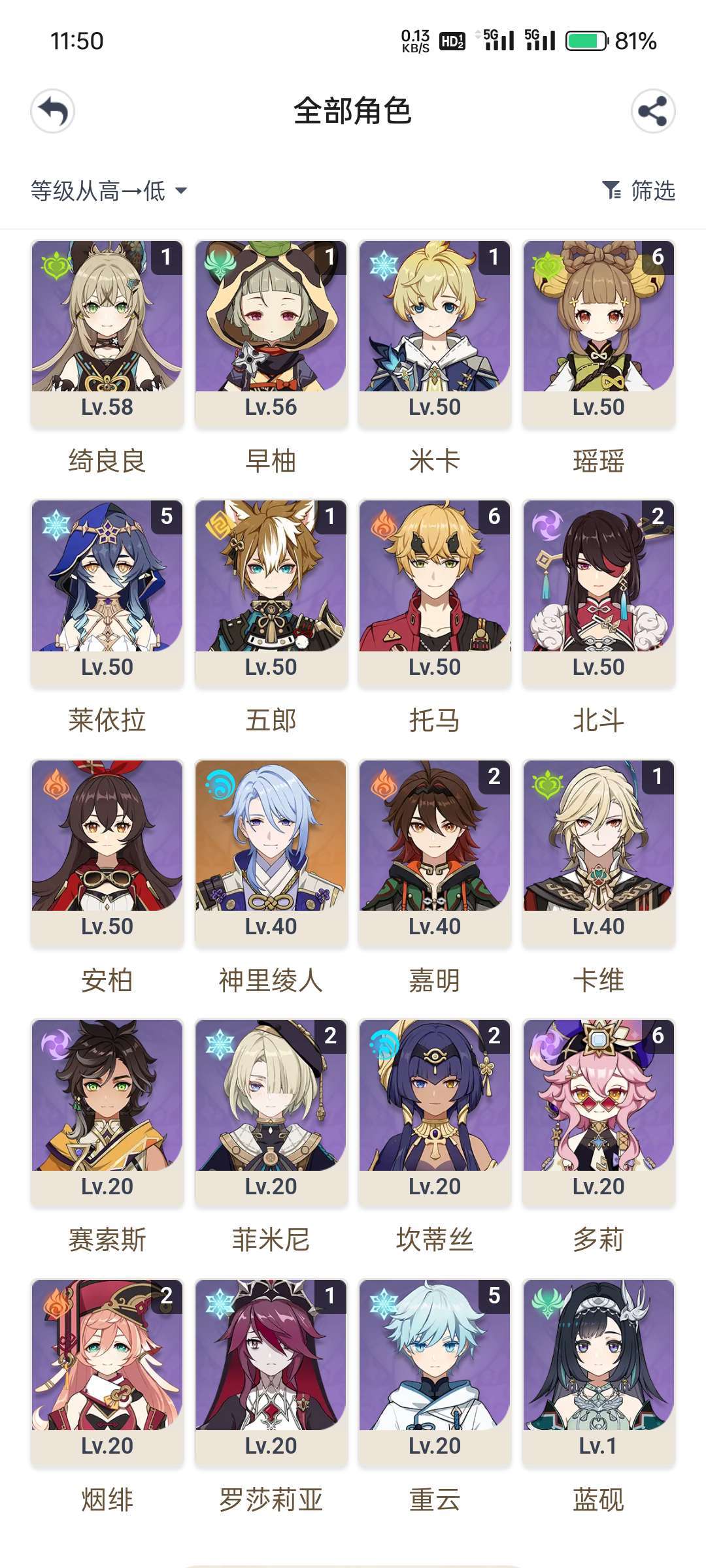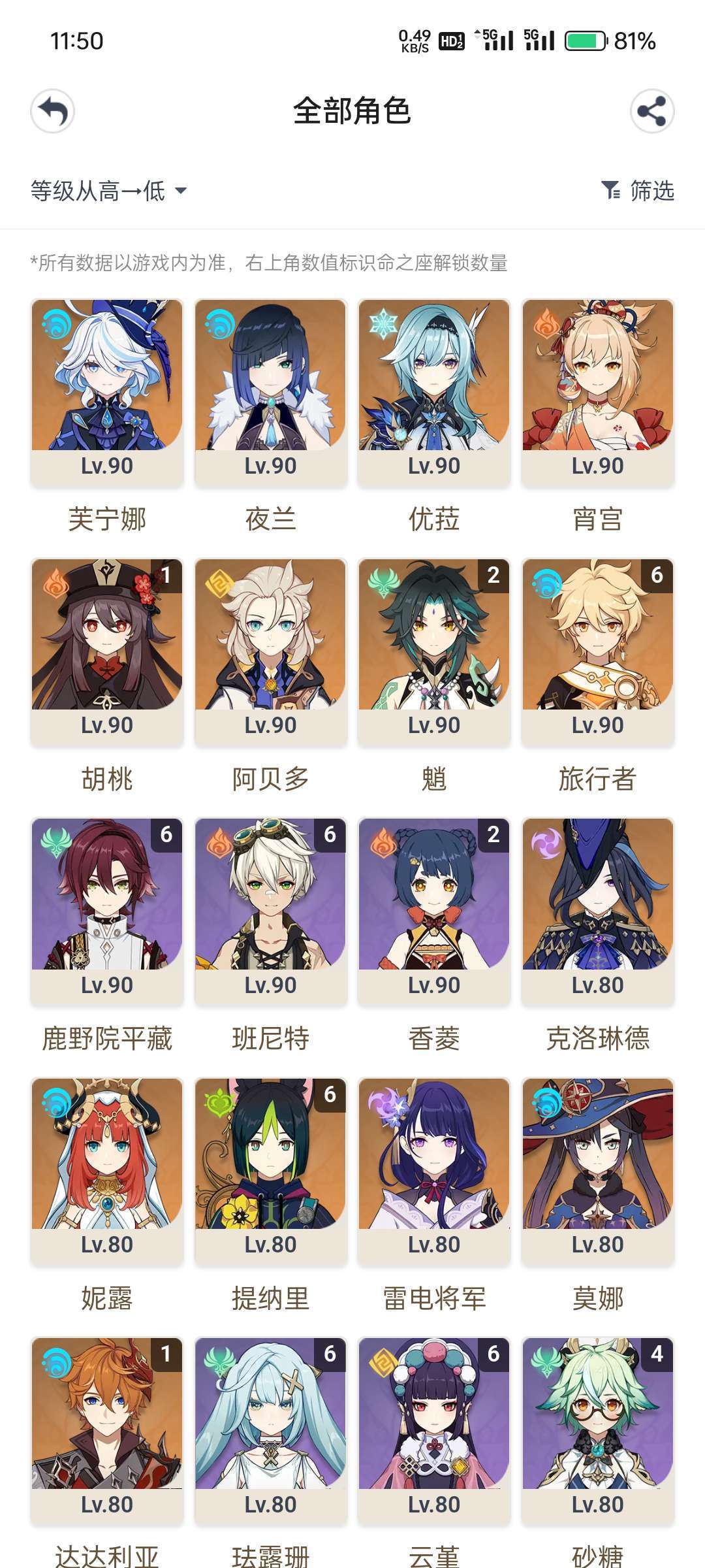一共39个金,1+1胡桃,满命提那里,满命班尼特且练度高,练度还不错,可以作为正常账号游号