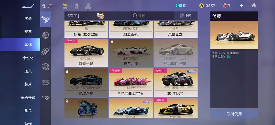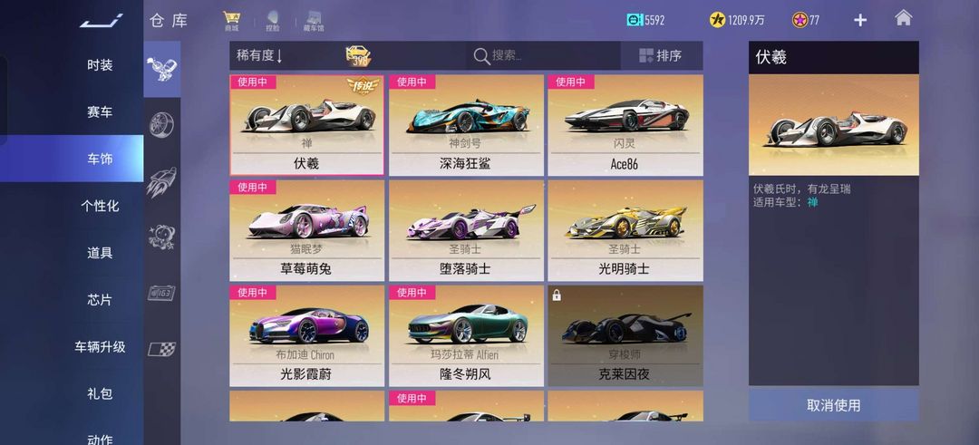 拥有大多数热门豪华补给车,多数皮肤,车辆总等级大于300