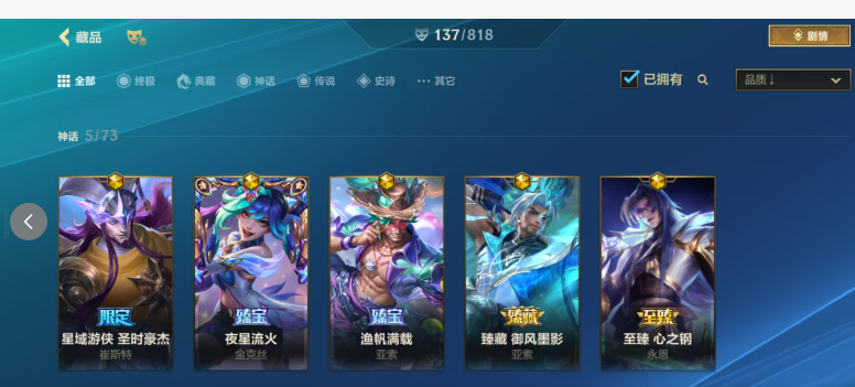 可排位135皮✨5神话臻藏御风墨影渔帆满载黑夜使者斗魂神龙亚索✨心之钢夜星流火星域游侠海魔至尊天煞劫