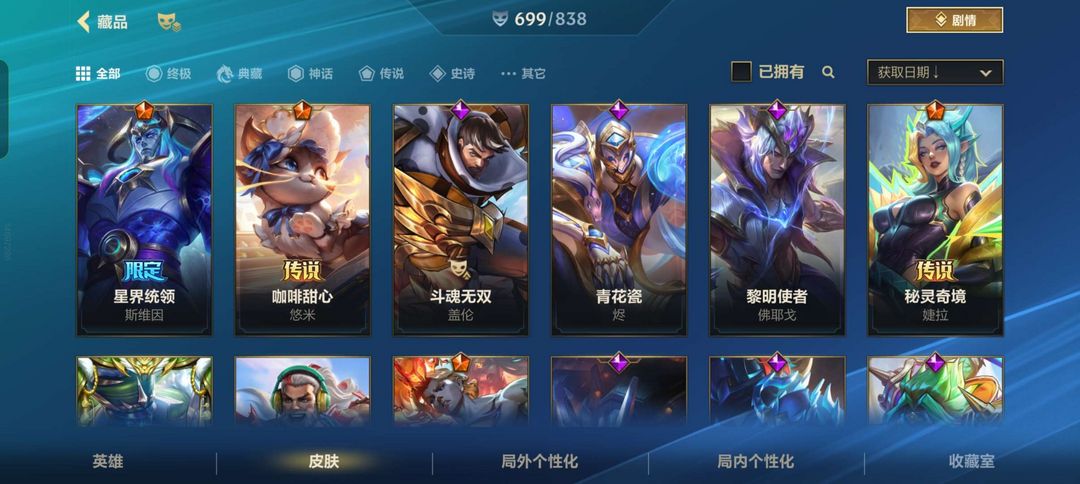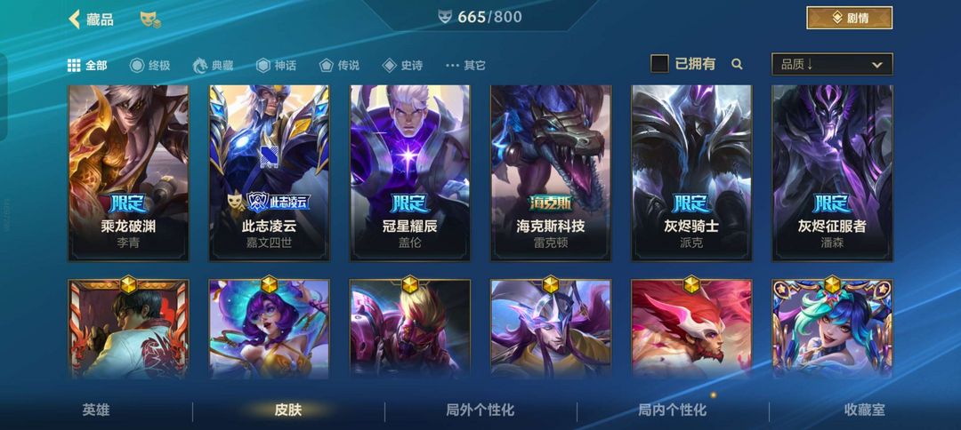 可排位 1典藏22神话 699个皮肤 动东西白嫖挂机拉黑⭐超武腕豪⭐天赋觉醒全皮⭐双城之战全皮等