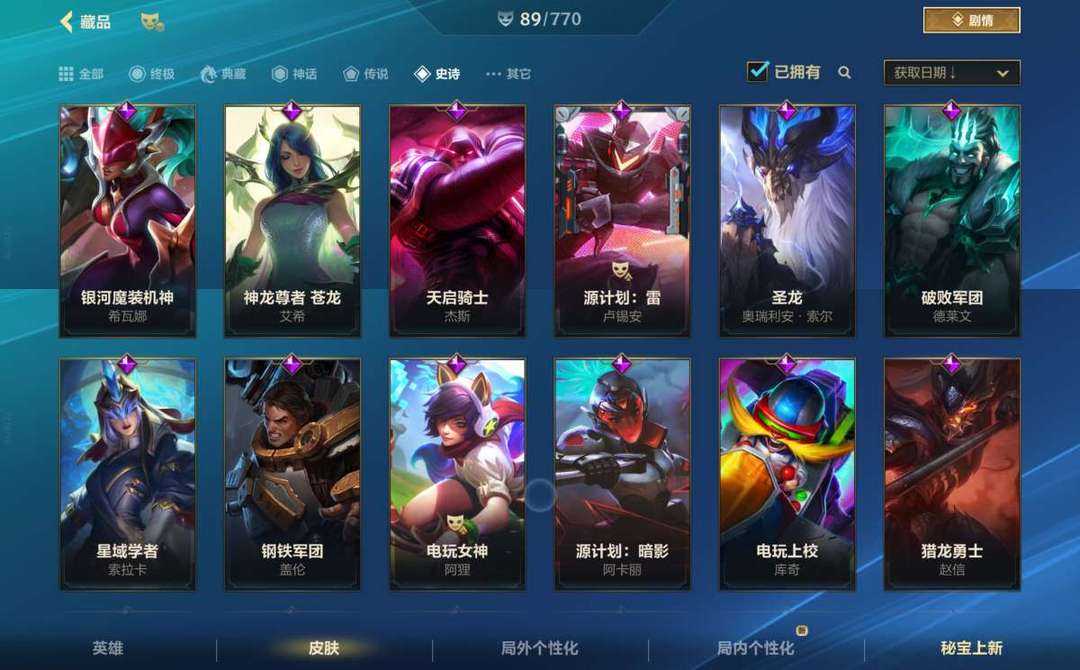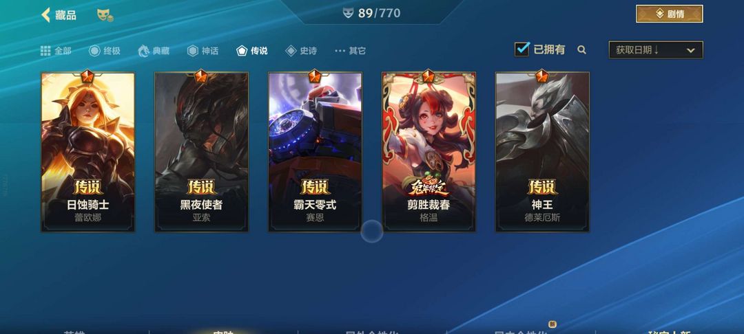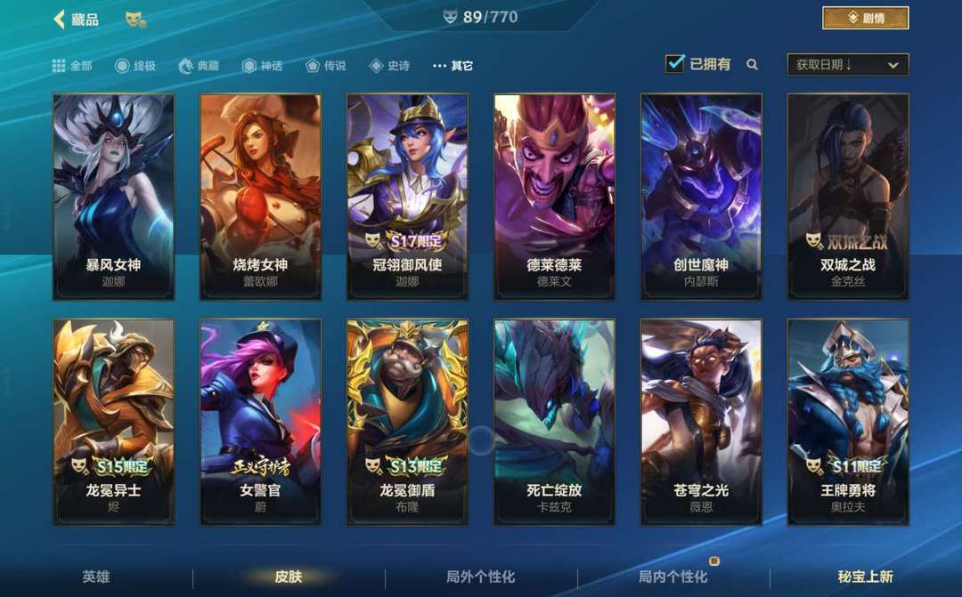 •可排位•119英雄+89皮肤•神王德莱厄斯•剪胜裁春格温•霸天零式塞恩•黑夜使者亚索•