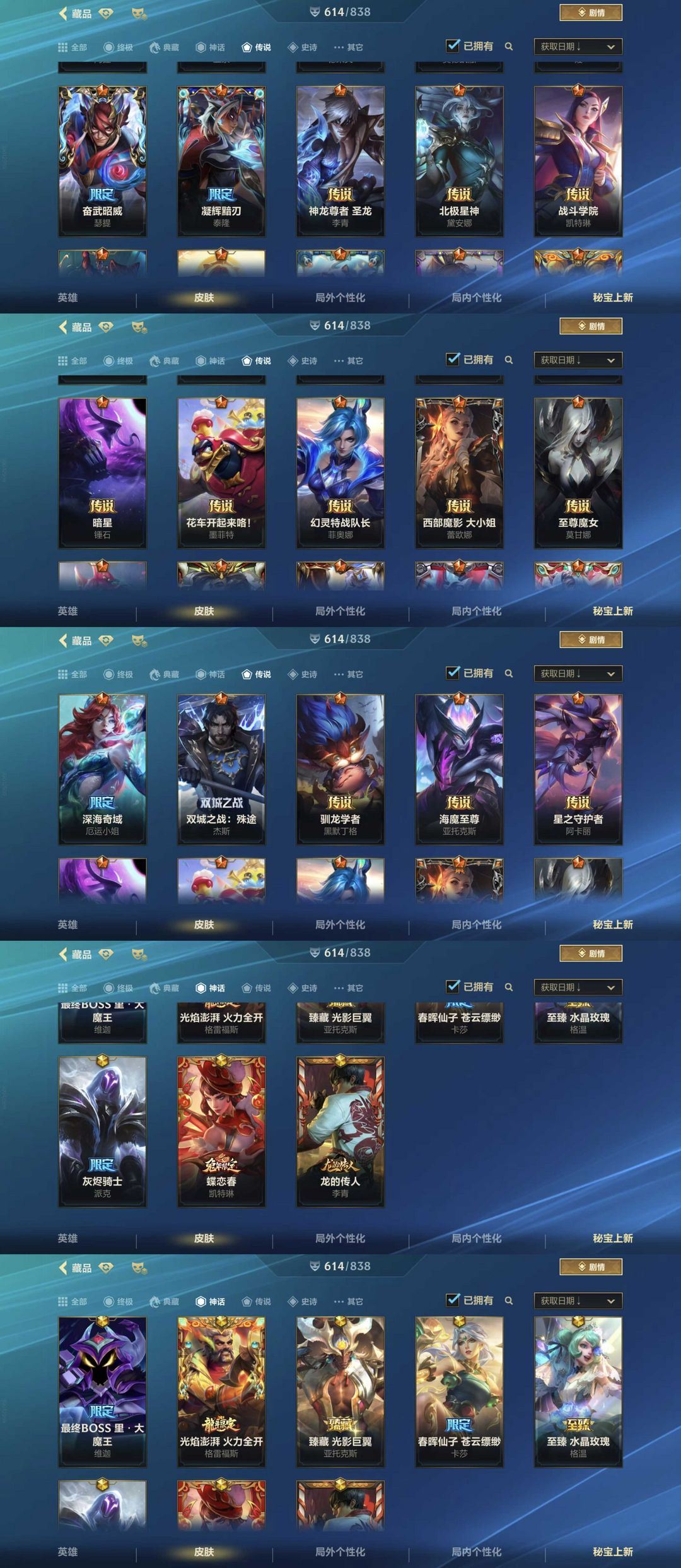 该号全英雄,皮肤614个,终极1个,典藏3个,神话18个,传说82个,请勿挂机谢谢~遇到上去还在游戏中帮忙打完不要挂机谢谢!!!祝您游戏愉快~