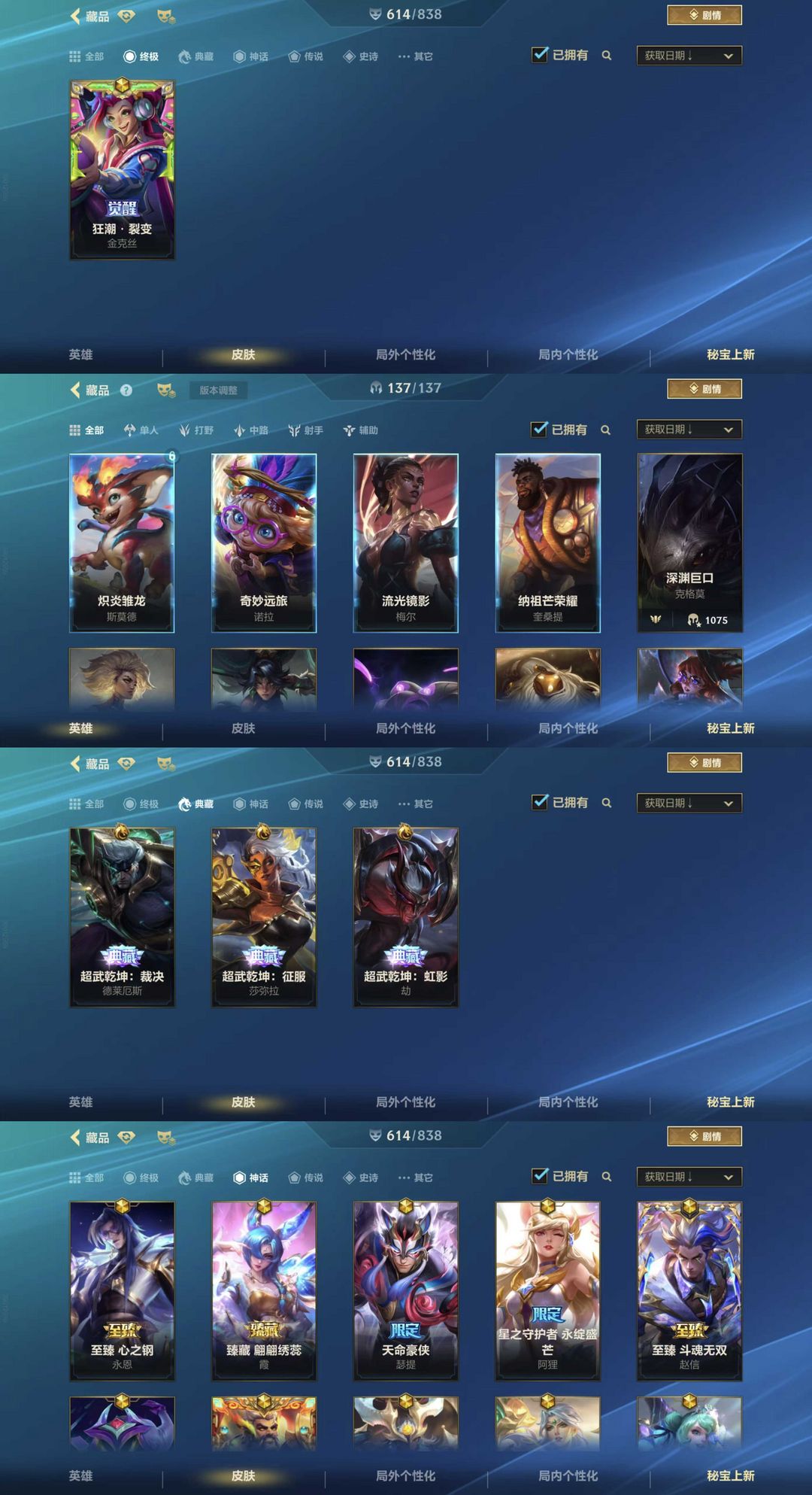 3典藏18神话82传说✨终极金克斯✨典藏诺手典藏莎弥拉典藏劫✨神话永恩神话霞✨天命豪侠神话阿狸赵信