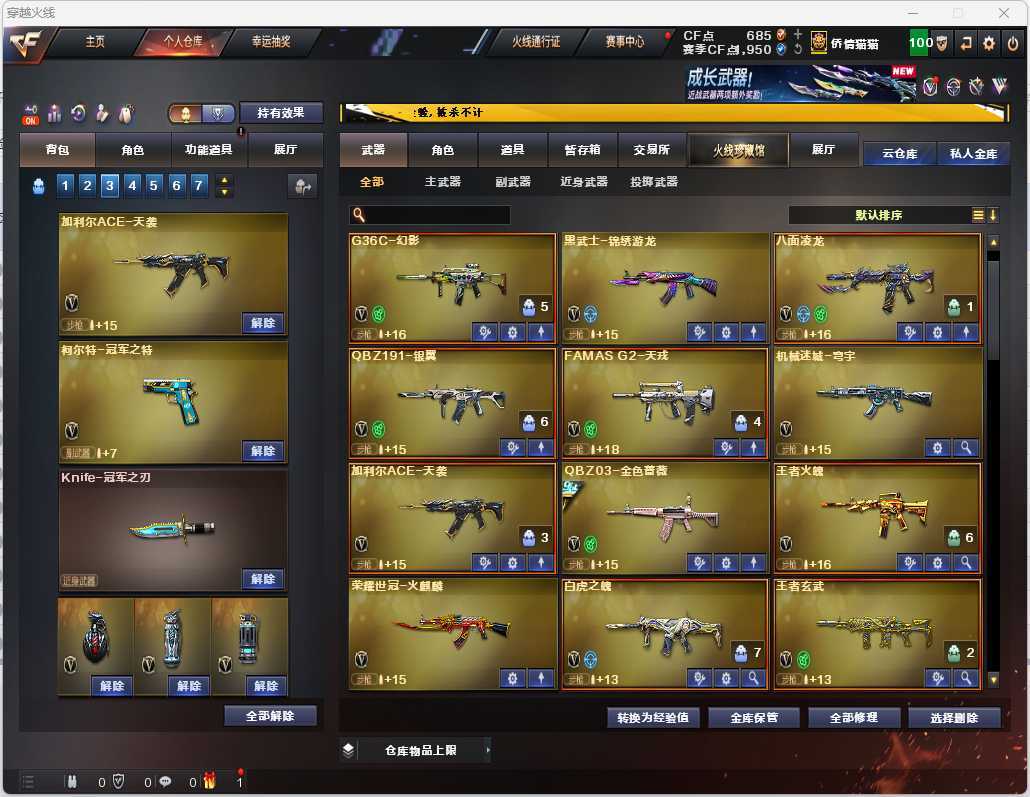 传说女帝星骇虹儿G36幻影天戎天袭✨八面凌龙炼狱奇幻宇宙万象6烈6盘✨幻神音效卡冠军巅峰荣耀炽芒蝶刃