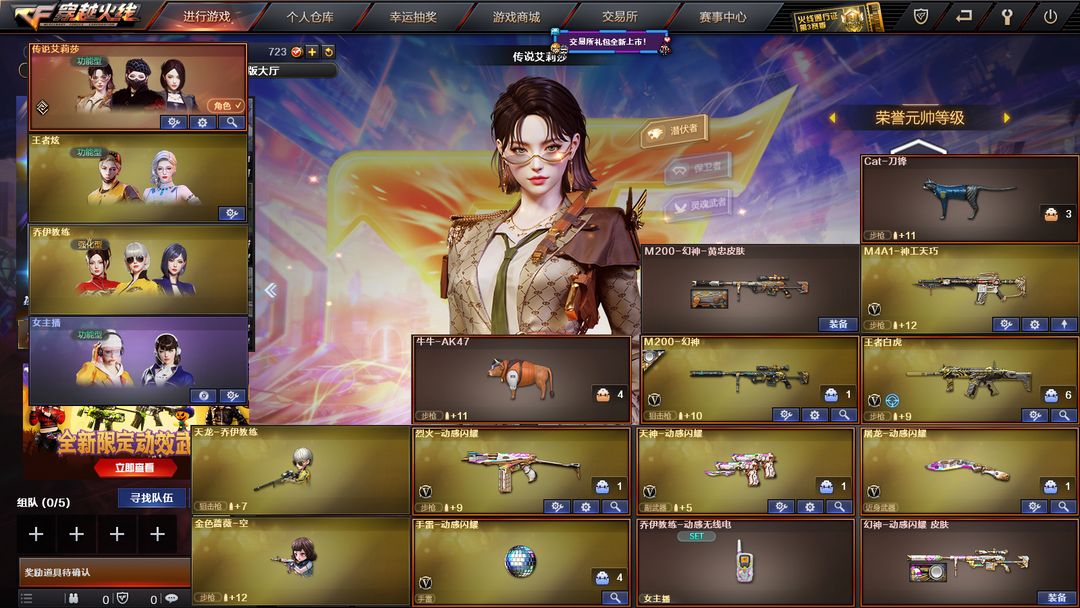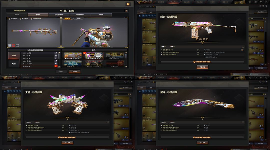 【装备道具】:【m200-幻神+幻神-动感闪耀皮肤★幻神-黄忠皮肤★王者白虎觉醒】【传说艾莉莎+王者炫四防+女主播四防+鹿小町语音包+樱+乔伊教练】【觉醒王者蔷薇+王者之力全部觉醒】【火麒麟+雷神*2+黑骑士+m4a1-神工天巧+烈火-动感闪耀★金色蔷薇-空★炫金超新星】【毁灭+天龙-乔伊教练】【神圣爆裂者-末日iii】【修罗*2+天神-动感闪耀+沙鹰-夜玫瑰】【屠龙*2+龙啸+擎天+麒麟刺+屠龙-动感闪耀+猫猫手套】【神工天巧雷套*2】【黑龙音效卡+黑骑士音效卡】【幻神-黄忠+m4a1-战神赵云+黑骑士-马超】【火麒麟-轻羽】虎牙炫彩背包、迪斯科炫彩背包、超级对讲机★牛牛AK47★CAT刀锋猫枪★天龙乔伊教练★qbz金色蔷薇空★荣耀之证卡牌★变异宝贝死亡对讲机不退包★佣兵觉醒无需换弹手斧镜减速雷★捕食者之眼查看血量★