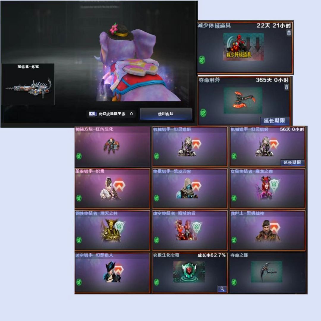 生化双炼狱泡泡象♥九霄圣角♥炽芒蝶刃*2♥4防荆棘术士星骸♥玄武蛇影♥6盘6烈全猎皮