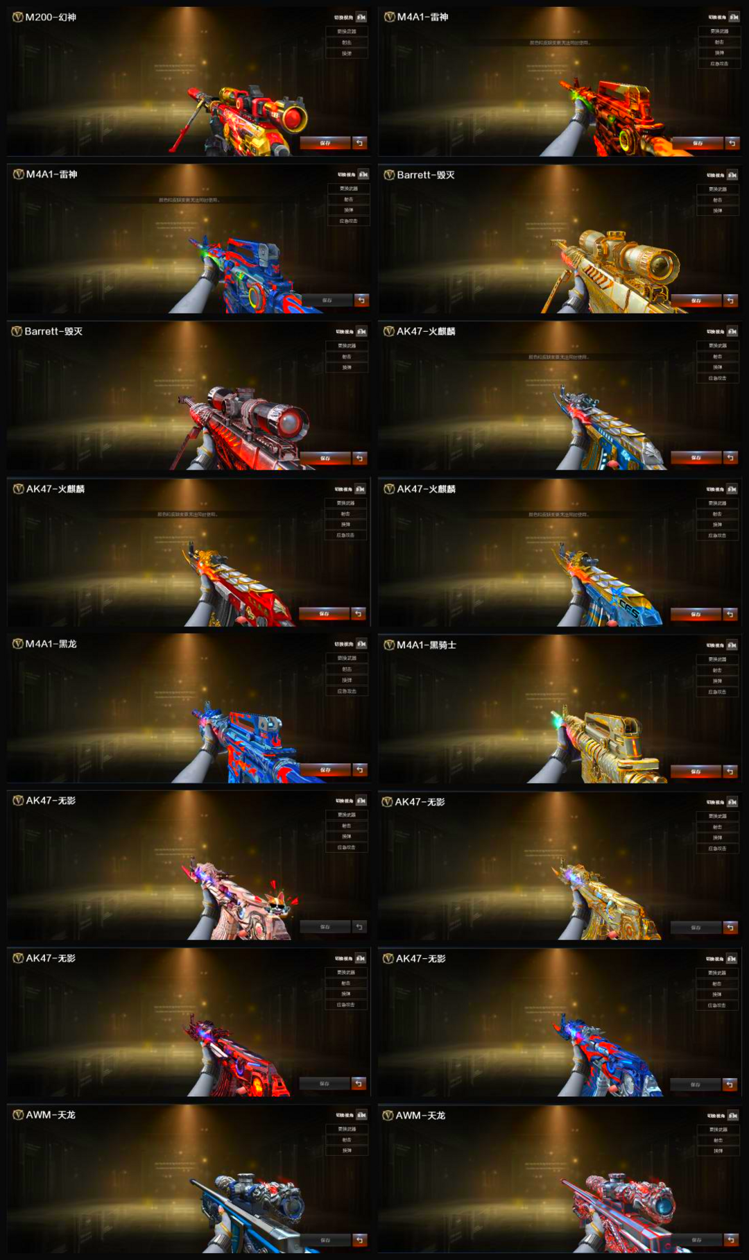 AG幻神音效卡/传说暗裔传说光耀/白虎/3雷暴USP/4防沙漠玫瑰/7烈龙斯太尔蝴蝶/6盘龙炼狱