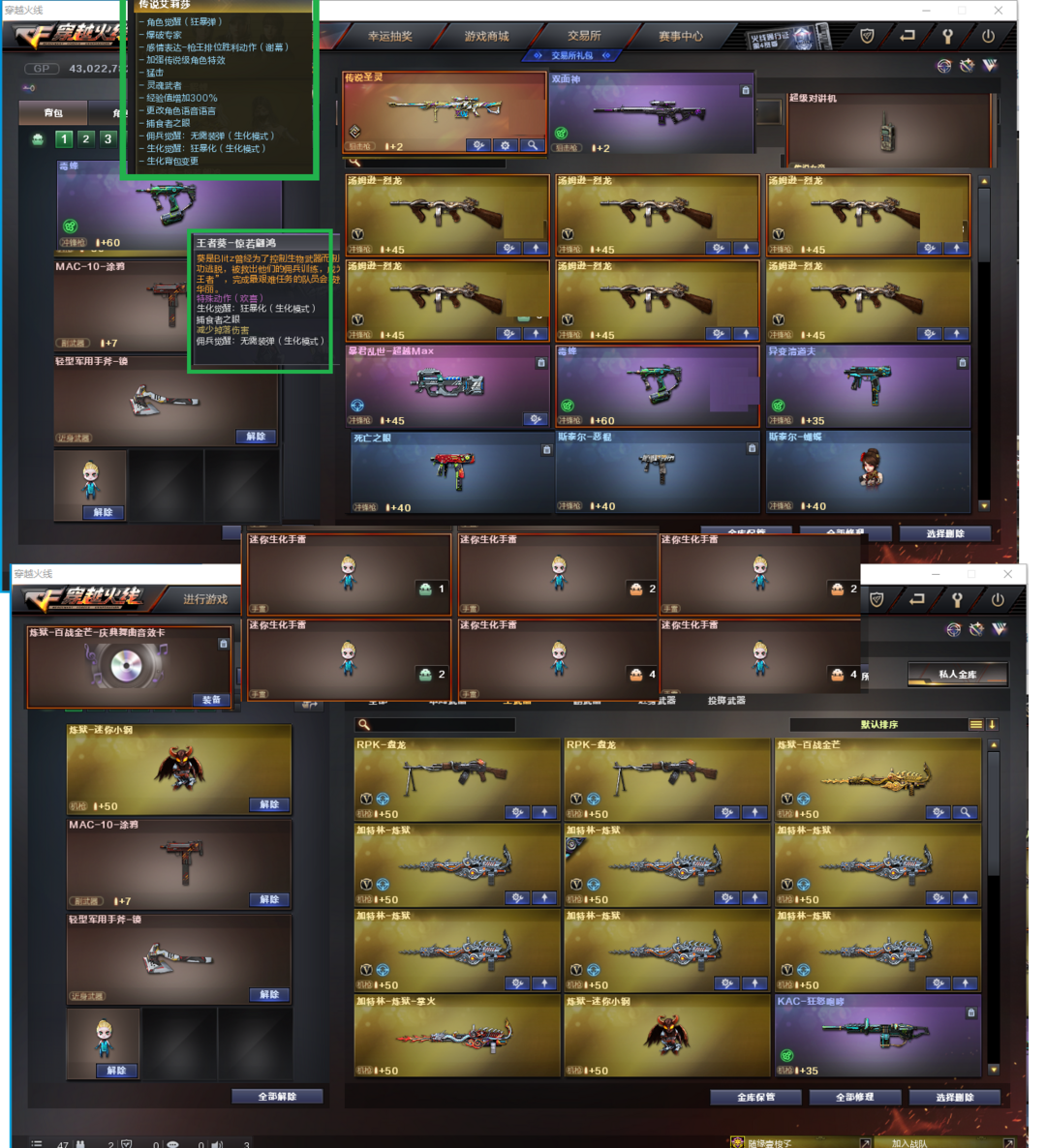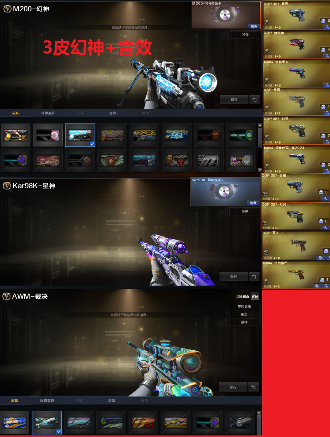 排位:可以--------------生化四防极品(生化背包更换、可以看僵尸血量):无需换弹、6烈、2盘、6炼狱、炼狱小钢、KAC狂怒咆哮、双面神、传说圣灵、毒蜂、斯太尔蝴蝶、异变清道夫、死亡之眼、MAC涂鸦、手斧镜、6个生化减速雷、超级对讲机、、、、、、、爆破四防:幻神3皮+音效(23白鲨世冠、AG冠军、宠儿皮肤)、98K星神、M200-竞技荣光、、USP冥王、柯尔特-百战金芒、23白鲨世冠柯尔特、USP雷暴、柯尔特竞技荣光、COP堕天神、COP幻灵、、、传说圣灵、传说夜影、传说光耀、传说暗裔、QBZ冠军之薇、G36C幻影、QBZ天罚、白虎、白虎之魄、、、幻神音效、星神音效、雷神音效、毁灭音效、黑骑士音效、、、7套雷暴、5套雷暴、6堕天神、7套幻灵、7套竞技荣光、、、、、爆破四防(传说女帝、云悠悠、王者貂蝉、影豹、雨棠、职业经理)、生化四防(传说艾丽莎、王者惊若翩鸿、职业选手)