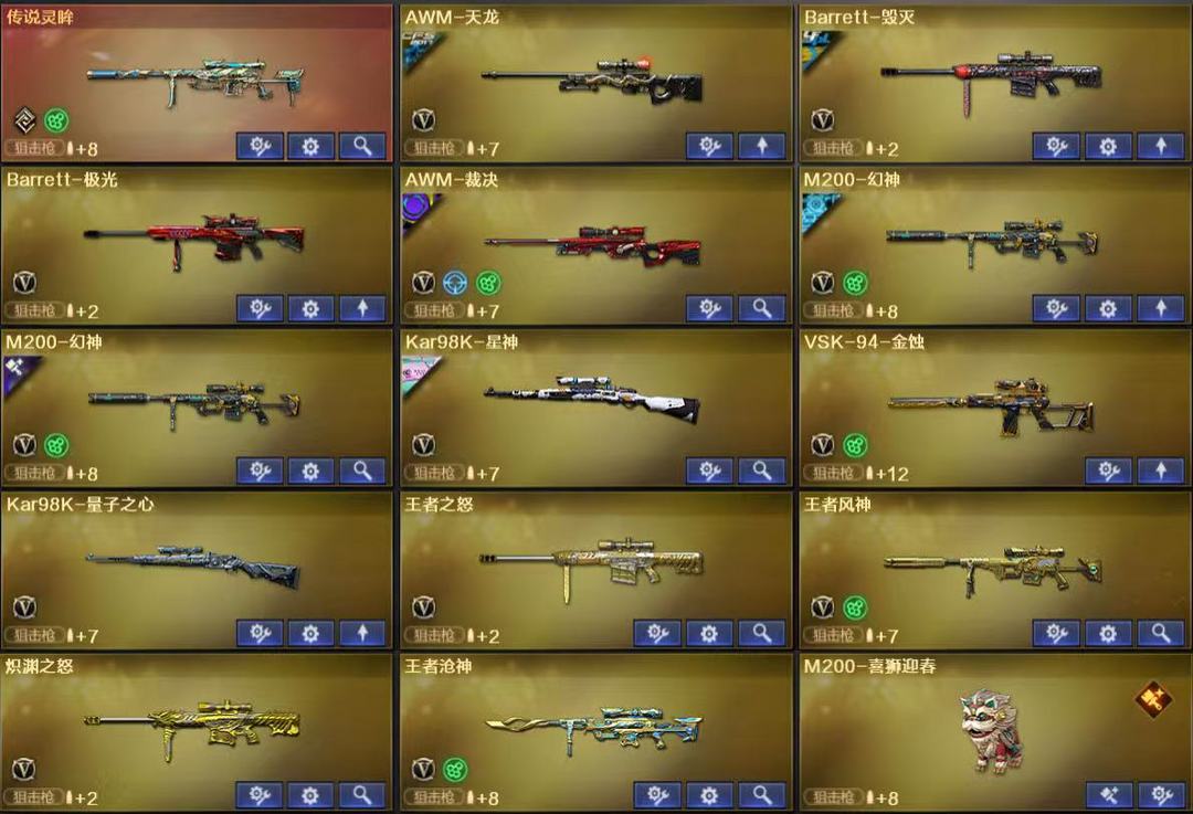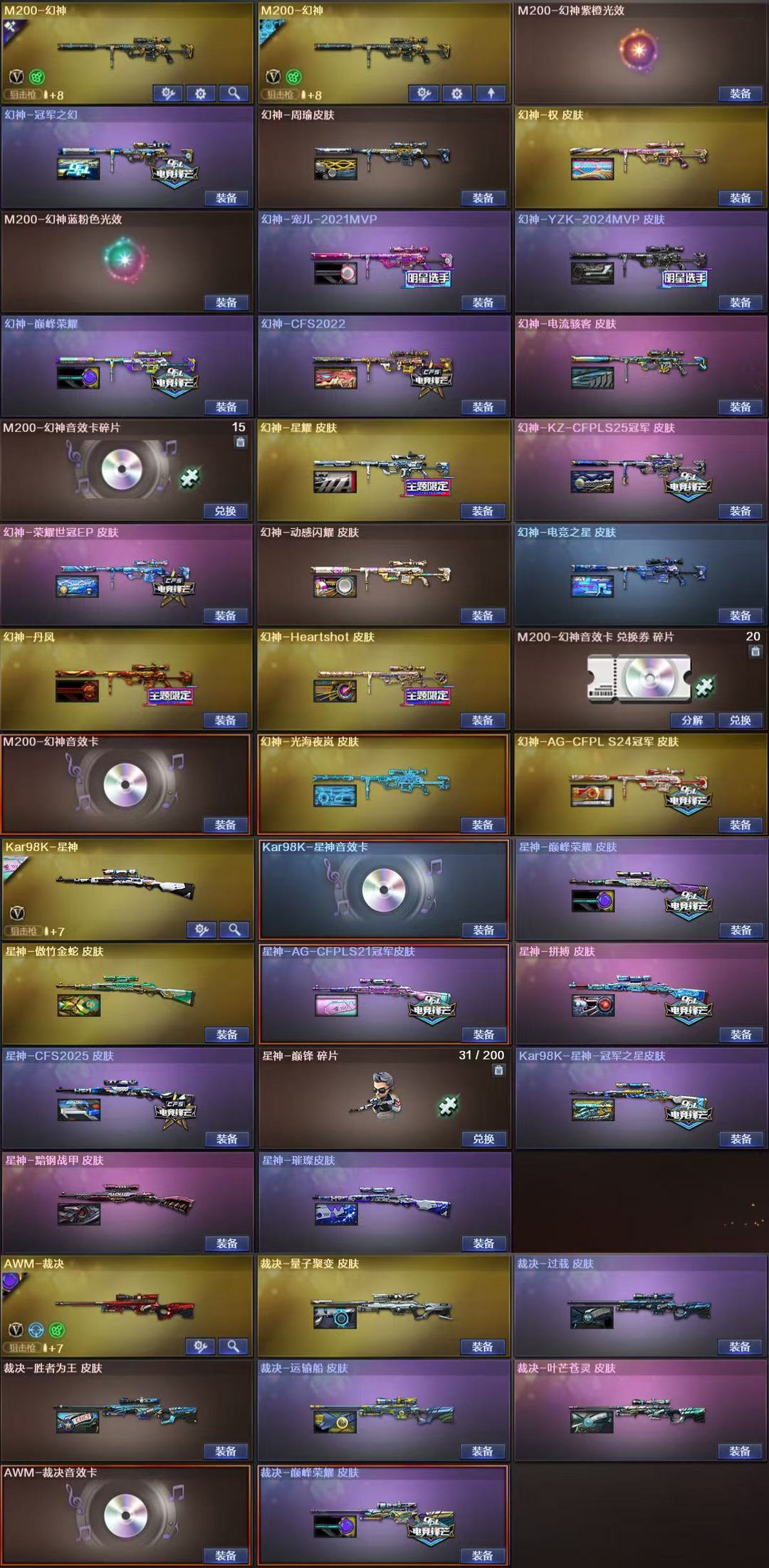 本游戏账号:英雄武器163个; 王者武器10个。 装备不多,但是主武器、副武器、近身武器够用 拥有完美游戏体验。重要的是,特殊装备有:Kar98K-星神、高爆手雷-竞技荣光、烟雾弹-竞技荣光、闪光弹-竞技荣光、QBZ03-金色蔷薇、Barrett-毁灭、M200-幻神、沙鹰-幻兽、M4A1-雷神、M4A1-黑骑士、AK47-火麒麟、COP 357-雷霆王者-觉醒版、高爆手雷-雷霆王者、炫金武士、炫金毁灭、关小雨、潘多拉、堕天使、王者-瞳-闭月羞花、王者炽天使、M4A1-黑骑士音效卡、M200-幻神音效卡、生化弹匣、Barrett-毁灭音效卡、等,随意畅选。
