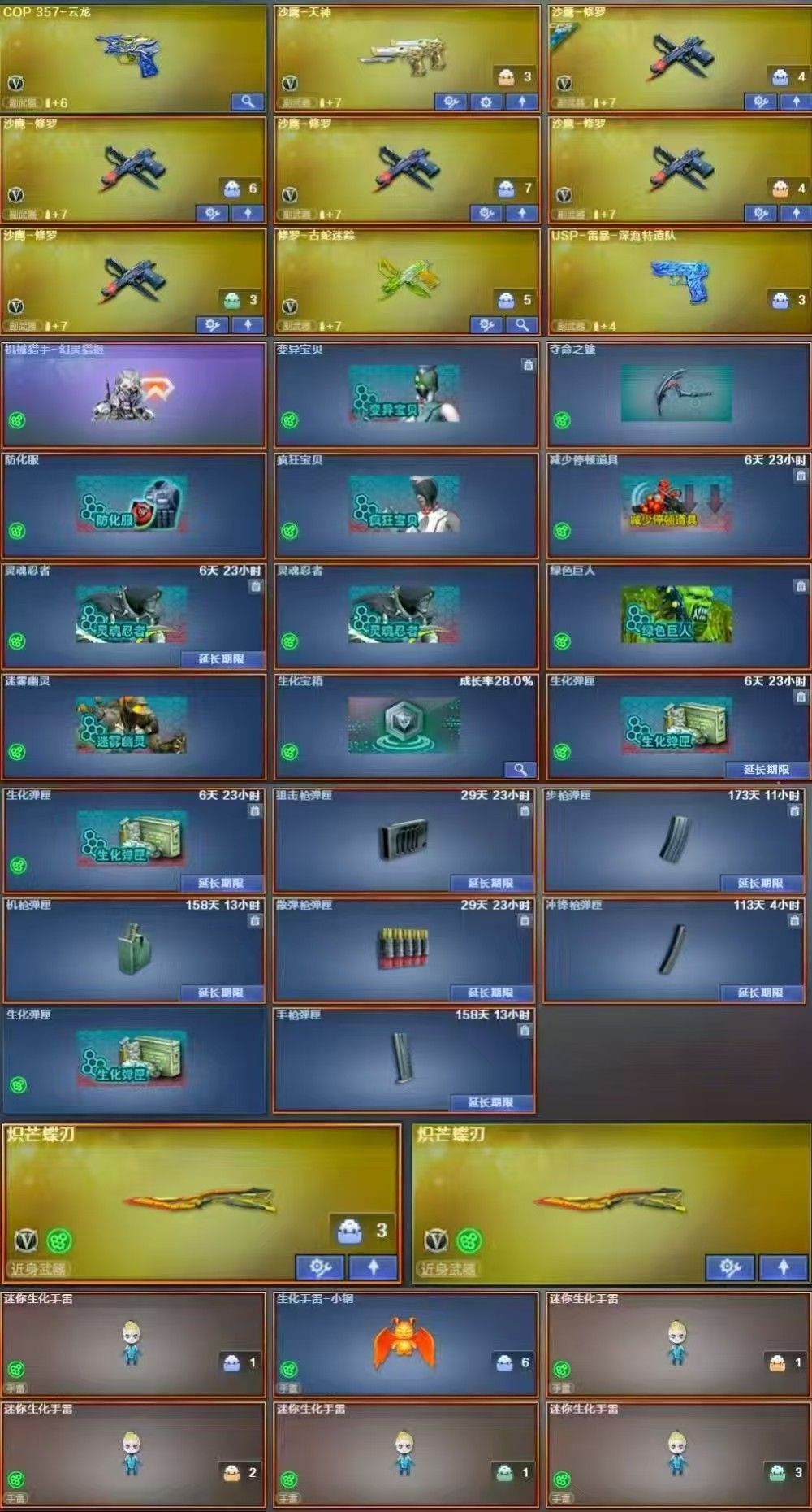 双炽芒蝶刃传说影煞四防炼狱小狮子蝴蝶炽火炎龙6盘6烈6修6娃娃雷+生化炽芒蝶刃6盘6烈传说辉光QBZ