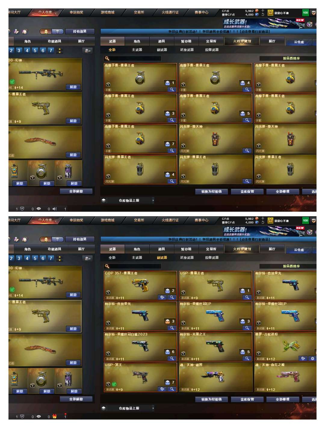 本游戏账号:传说武器(传说幽瞳)(传说圣谕)(传说星骇);英雄武器158个; 王者武器60个。 重要的是,特殊装备有:传说幽瞳、USP冥王、USP王者雷暴、幻神、白鲨世冠柯尔特、无冕之王柯尔特、QBZ蔷薇cfs2024皮肤、QBZ宠儿EP皮肤、雷神搭配荣耀之魄、巅峰荣耀屠龙+荣耀之锋屠龙+AG屠龙、黄金猫猫手套-白鲨、COP 357-雷霆王者-觉醒版毁灭cfs2020皮肤、屠龙破浪皮肤✘2、雷神耀金皮肤、M4A1-黑骑士、火麒麟、毁灭、雷神、黑龙、QBZ03-金色蔷薇、麒麟刺-堕天神、闪光弹-堕天神、高爆手雷-雷霆王者x5