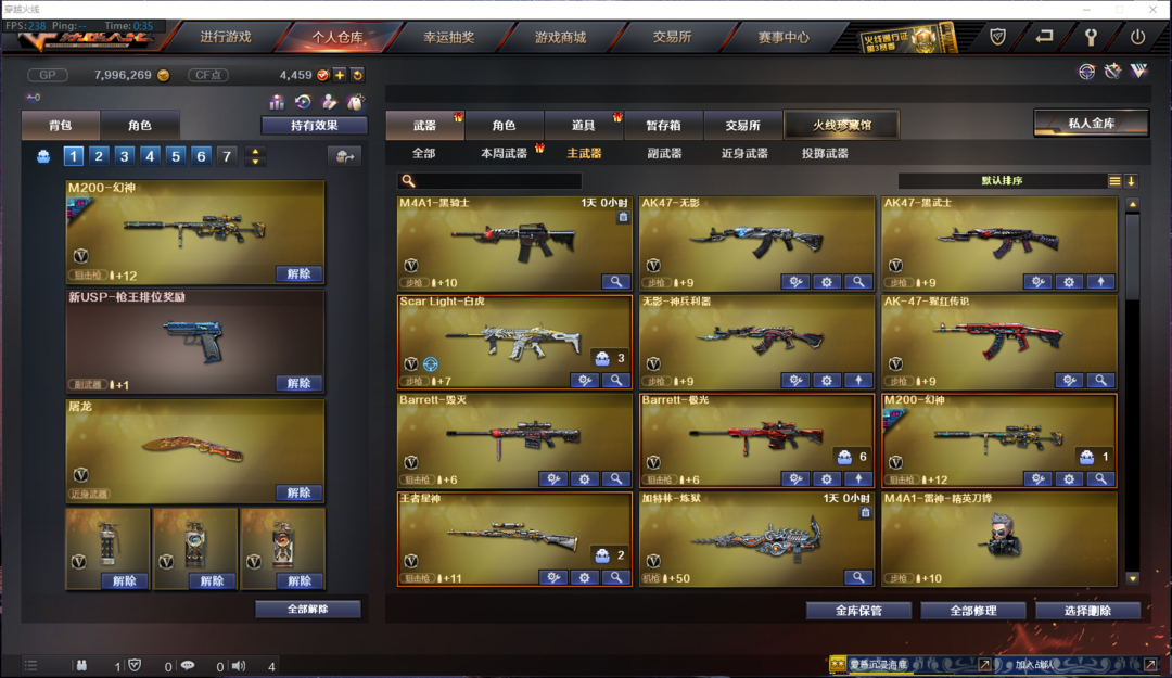 本游戏账号:英雄武器41个; 王者武器2个。 装备不多,但是主武器、副武器、近身武器够用 拥有完美游戏体验。重要的是,特殊装备有:幻灵之锋、M4A1-雷神、Barrett-毁灭、QBZ03-金色蔷薇、M200-幻神、COP 357-幻灵、M4A1-幻灵、Scar Light-白虎、AK47-火麒麟、M4A1-黑骑士、炫金毁灭、圣诞潘多拉-X、王者涂鸦、雷霆-β、生化弹匣、等,随意畅选。