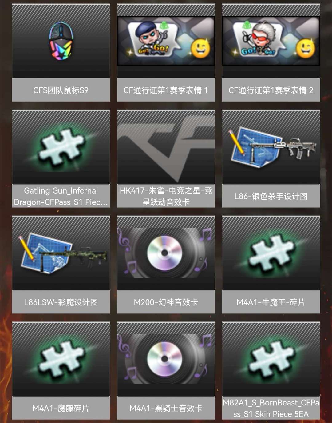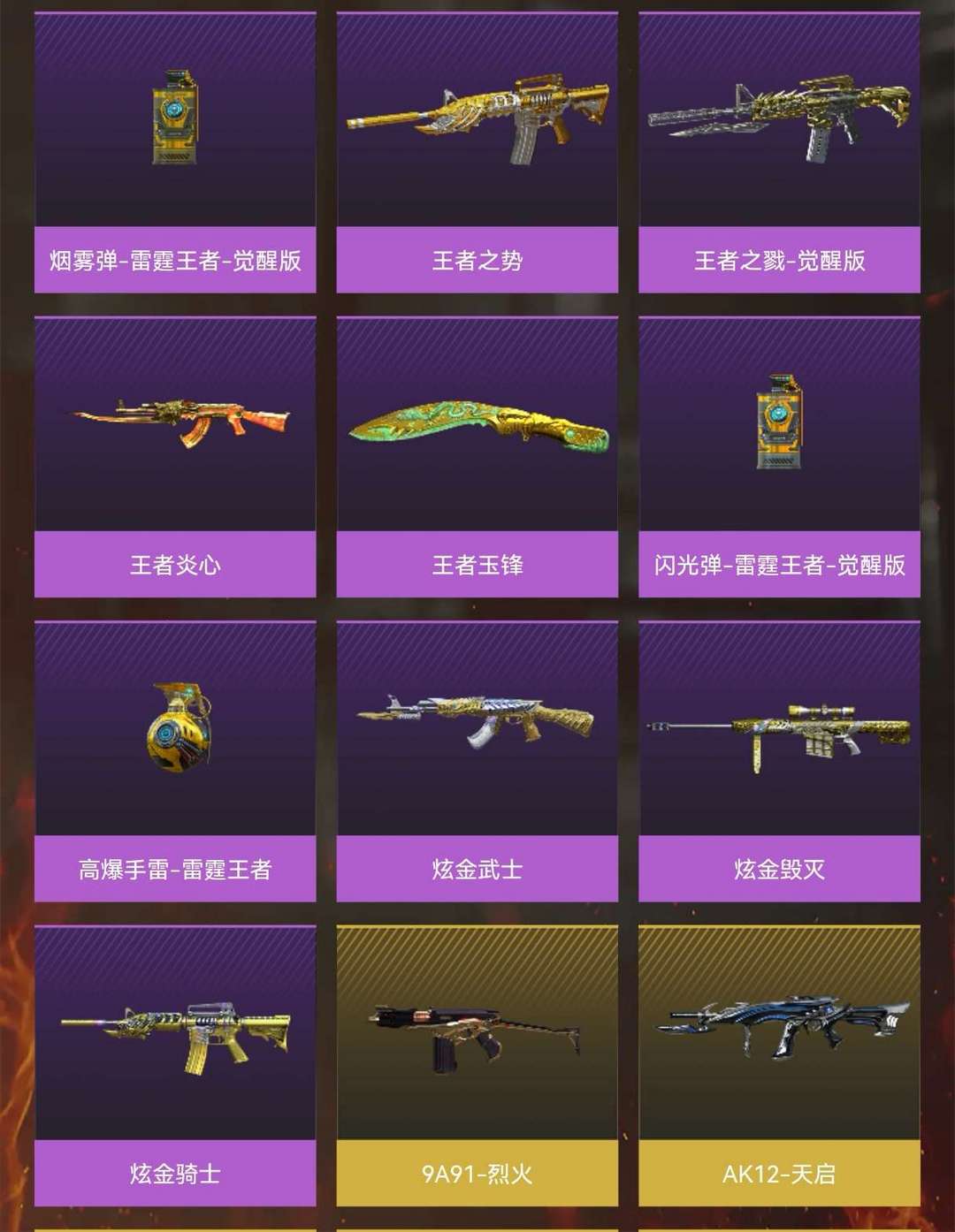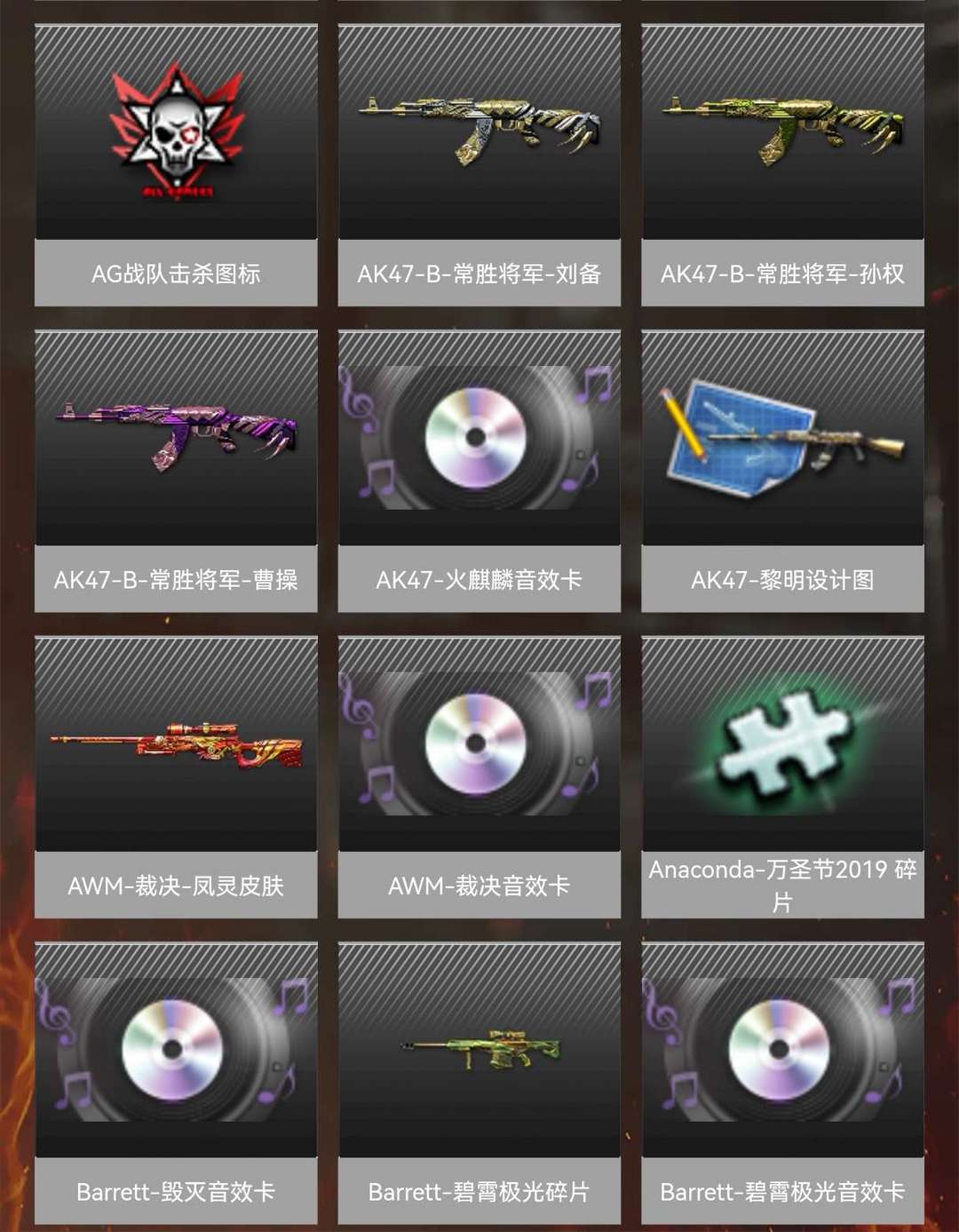本游戏账号:特殊装备有:M4A1-黑骑士、麒麟刺、AK47-火麒麟、Barrett-毁灭、加特林-炼狱、M4A1-雷神、M4A1-青龙、Kar98K-星神、Barrett-朱雀、M200-幻神、黑骑士-海王、M14EBR-玄武、炫金武士、炫金毁灭、王者之势、炫金骑士、王者炎心、王者玉锋、高爆手雷-雷霆王者、源·火麒麟、堕天使、王者-葵-貂蝉、圣诞潘多拉-X、Barrett-毁灭音效卡、AK47-火麒麟音效卡、M4A1-黑骑士音效卡、M200-幻神音效卡、等,随意畅选。