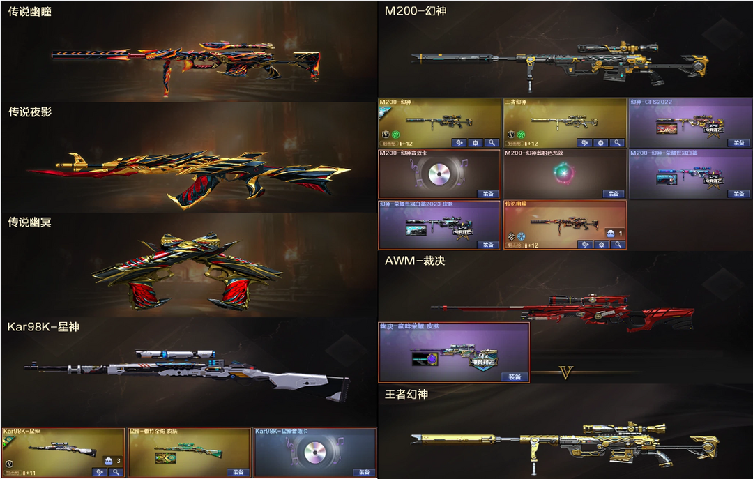 传说幽瞳幽冥夜影♉幻神5皮白鲨音效+星神傲竹音效+裁决巅峰✅QBZ金蛇+4柯尔特2炽芒♉4防云悠悠