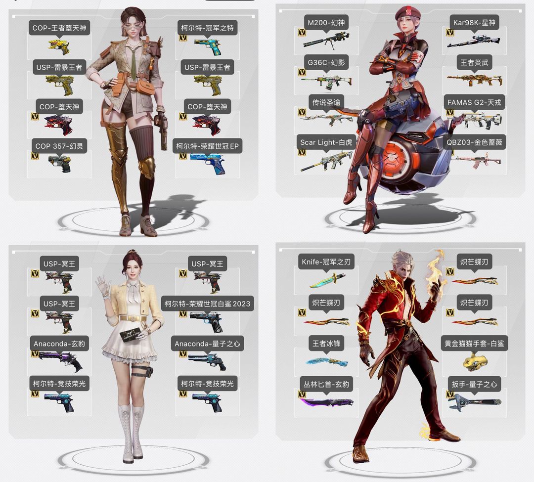 本游戏账号:英雄武器149个; 王者武器22个。 装备有:神威莲华、传说星骇、传说圣谕、幻神KZ冠军、EP-2024荣耀世冠、白鲨2023荣耀世冠、星耀皮、狮子炼狱3把炽芒蝶刃、法玛斯-天戎、冠军之特、冠军之薇、冠军之刃、雷神荣耀之魄、冥王-USP、雷暴王者uspx2、玄豹套装x7、G36C-幻影、王者玄武、神秘礼盒、如意手环、M200-幻神7皮+音效卡、白虎-梅雀衔霜、白虎-AG、裁决-流光秘银+音效卡、星神璀璨星空+音效、王者冰锋、6把烈龙+蛇影双骄+斯太尔-枪娘暗刃、6盘+加特林炼狱、生化弹匣、毁灭音效卡、极光音效卡等,随意畅选。