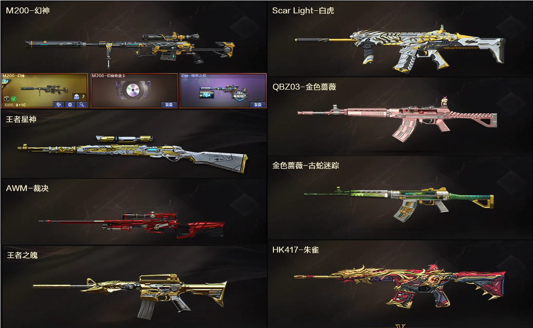 幻神冠军之幻+音效卡✨星神裁决白虎QBZ蔷薇朱雀+金色蔷薇王者之魄✨修罗天神屠龙✨炼狱死亡6烈龙