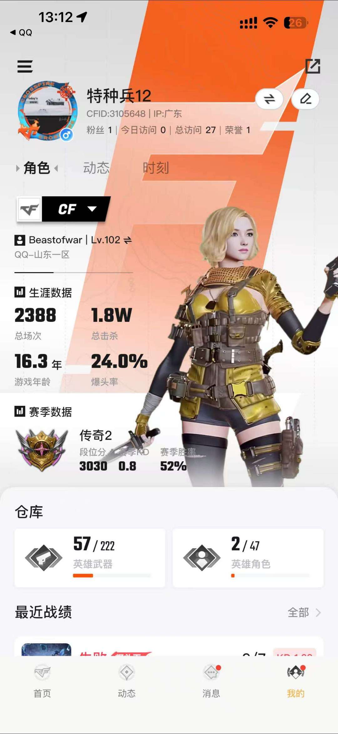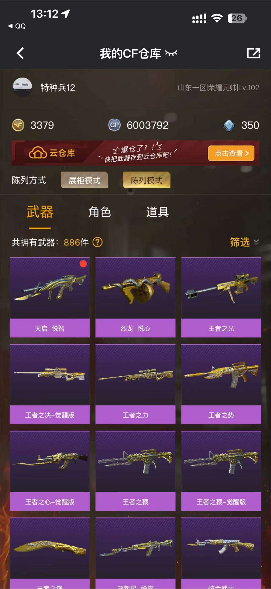 Lv.102段位传奇3VIP4113V58王者3炫金山东一区步枪狙击大多数都有可进行排位