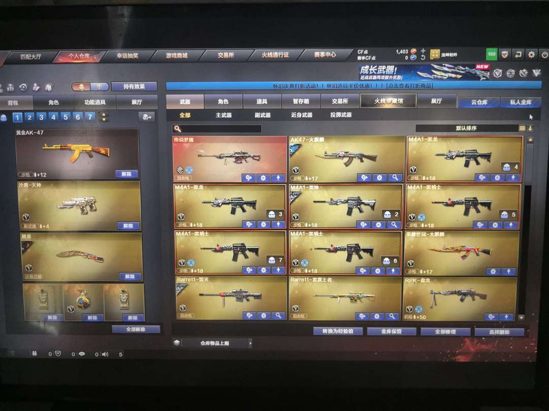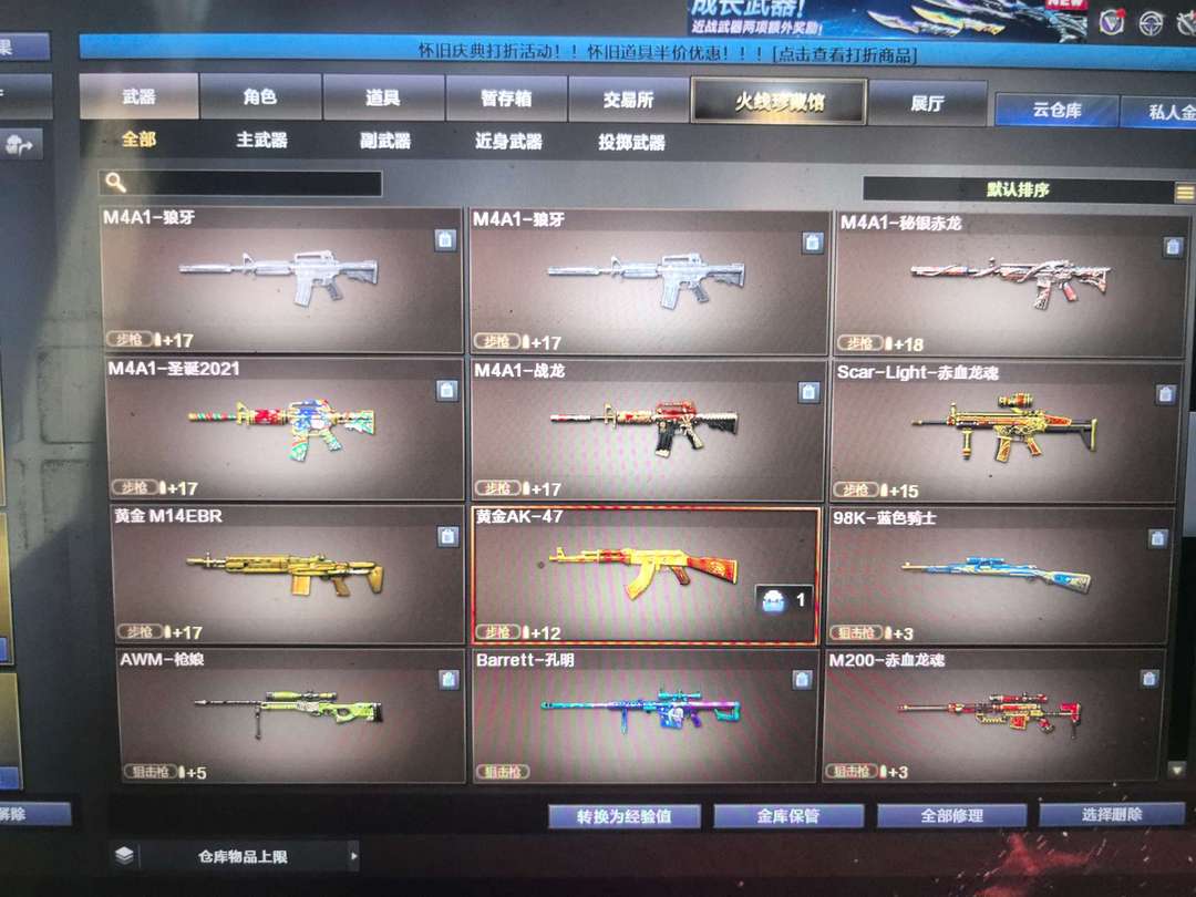 个人一手,永久黄金AK,6把英雄M4子弹加成。火麒麟,传说梦魇。可打排位。请保持信誉分。无特殊要求