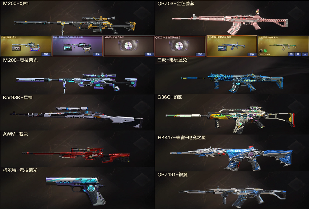 爆破❤幻神星耀白鲨竞技音效卡+星神裁决❤QBZ蔷薇破浪音效卡+幻影白虎朱雀银翼❤柯尔特+4防云悠悠