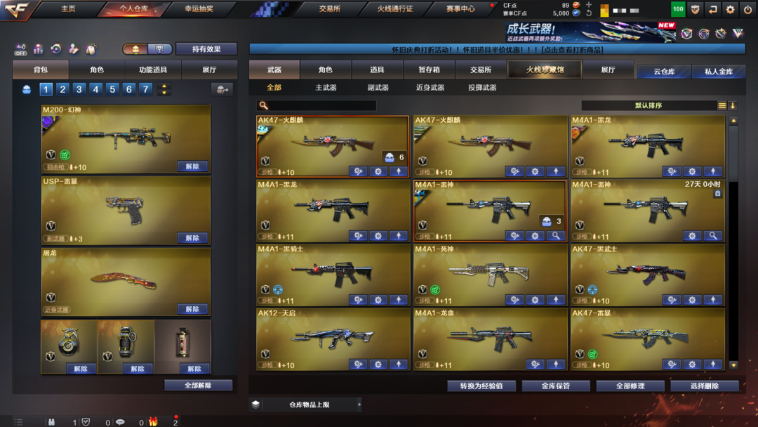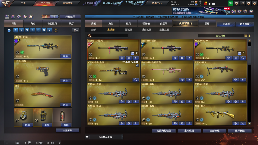 幻神+音效卡+巅峰荣耀,u-s-p雷暴,步枪齐全,5炼狱