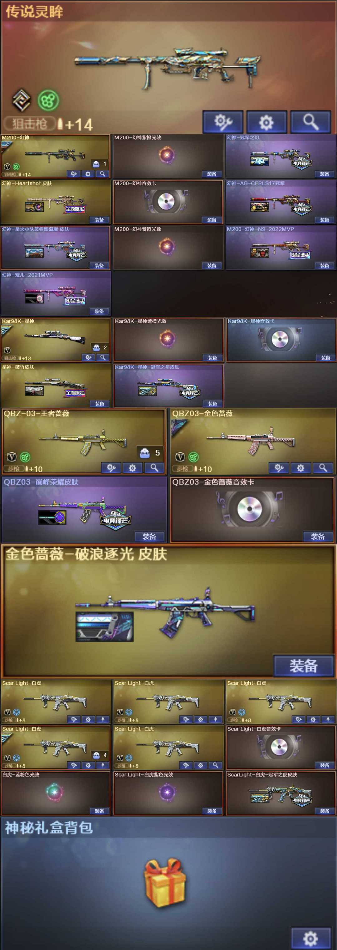 传说灵眸✨幻神宠儿冠幻星火6皮+音效✨星神QBZ白虎三件套+幻影裁决9手枪炽芒冠军小刀✨6盘6烈蝴蝶