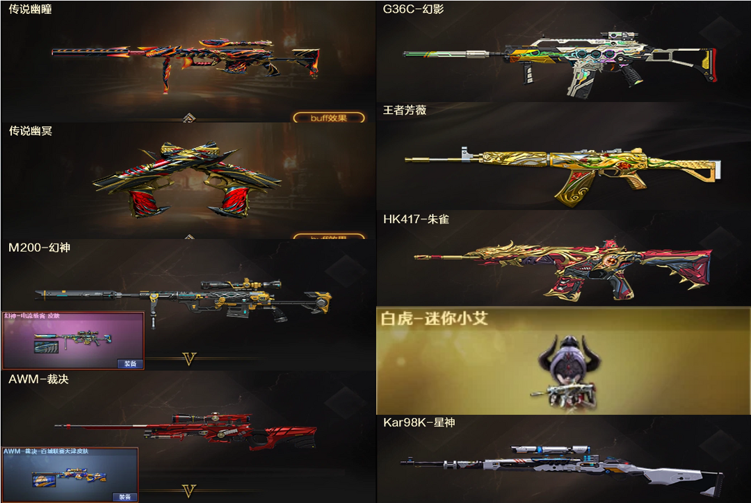 传说幽瞳2幽冥❤幻神电流骇客+裁决百城星神❤G36C幻影QBZ芳薇白虎迷你小艾❤3防关小雨+死亡6烈