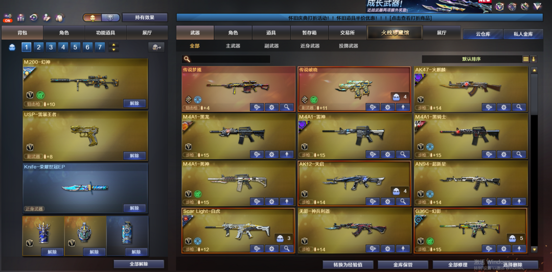 北部枪王4⭐幻神三件套EP世冠全套雷暴王者白虎QBZ三件套加利尔天袭G36C幻影⭐4防妮妮蝴蝶刀