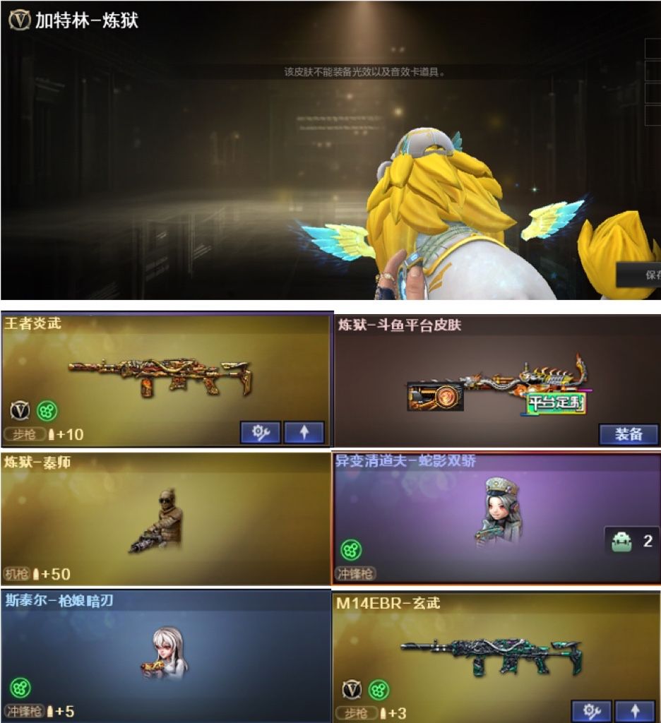 禁止使用第三方软件外挂、鼠标宏、驱动,发现立马起诉追究赔偿。 神威天绫、神威莲华、传说影煞、传说星骇、传说圣谕、传说艾莉莎、幻神Kz、EP世冠全套、白鲨世冠、欧欧、AGS24、AGS17、星火小队、宠儿、巅峰、权、动感、丹凤、幻神音效卡;幻影、幻影音效卡,加利尔ACE-天袭,白虎5皮、白虎音效、星神6皮、星神音效,王者星霆,M200-竞技荣光,裁决5皮、裁决音效卡、冠军之特*2、白鲨柯尔特、荣耀世冠、荣光柯尔特、EP柯尔特、冥王USP*2,王者雷暴USP、神功天巧USP、云龙COP*2、妮妮、鹰、隼、云悠悠、关小羽,星际战将,炽芒蝶刃*3、COP幻灵*2、黄金猫猫手套-白鲨、Knife、5盘5烈、枪娘斯泰尔、异变清道夫