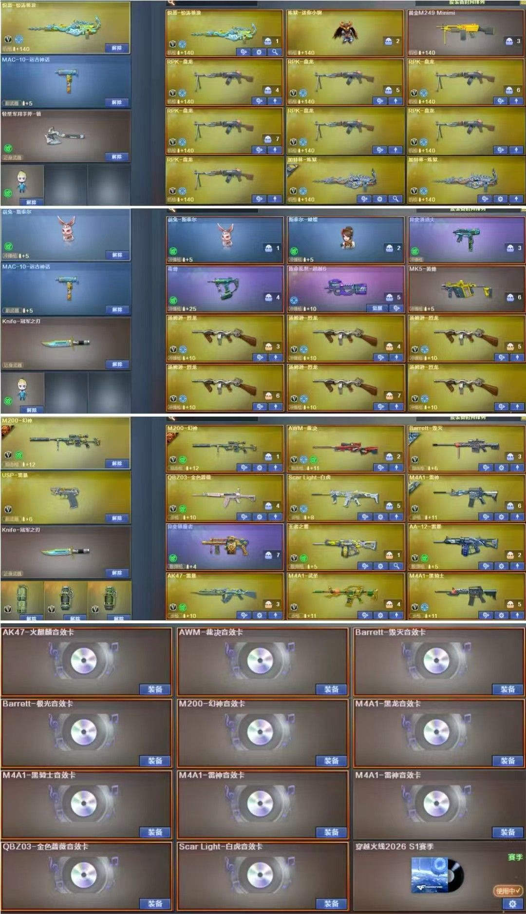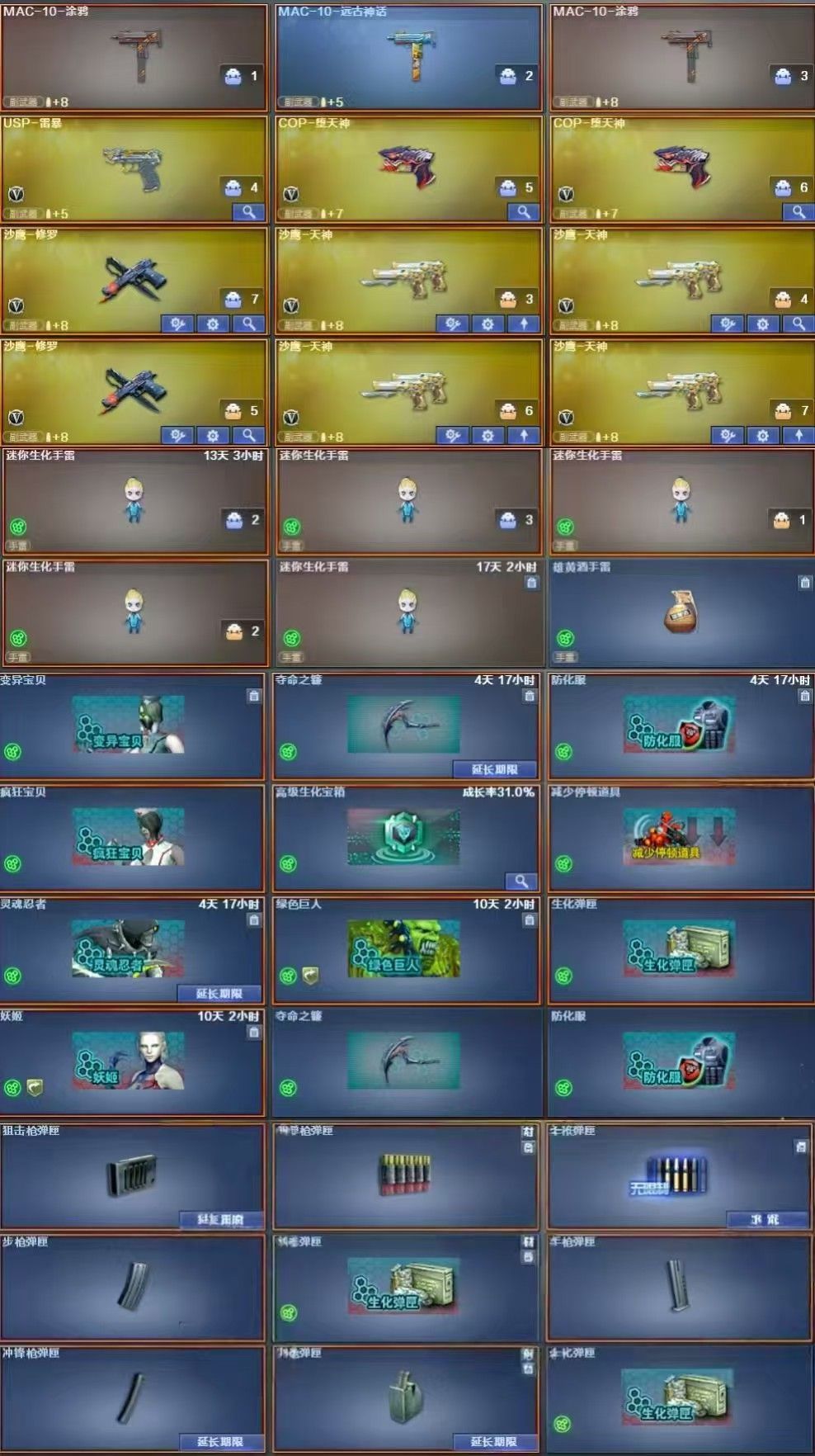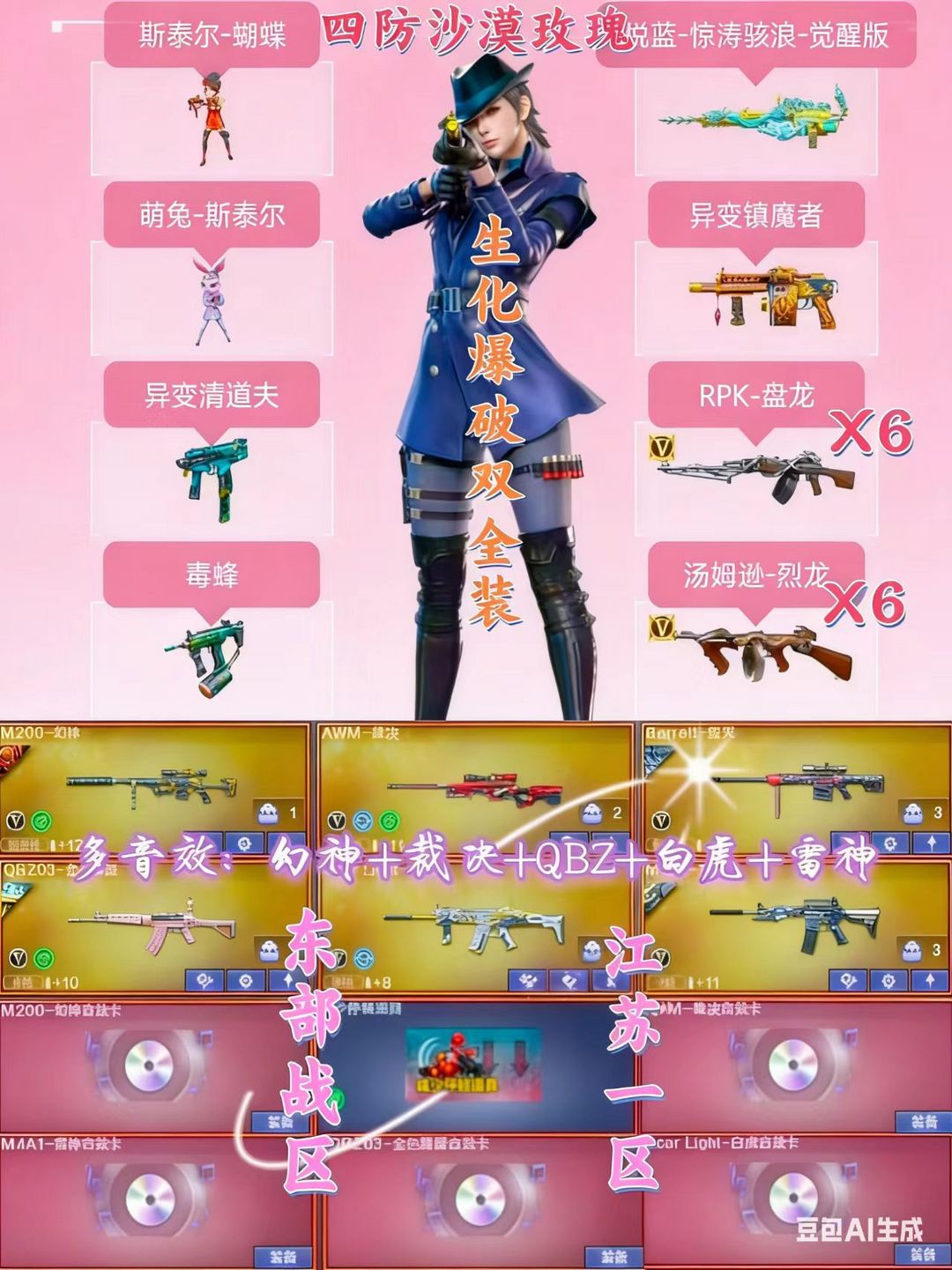 沙漠玫瑰4防+蝴蝶萌兔斯太尔清道夫毒蜂6盘6烈异变镇魔者+幻神音效卡+裁决音效卡+生化爆破双全装