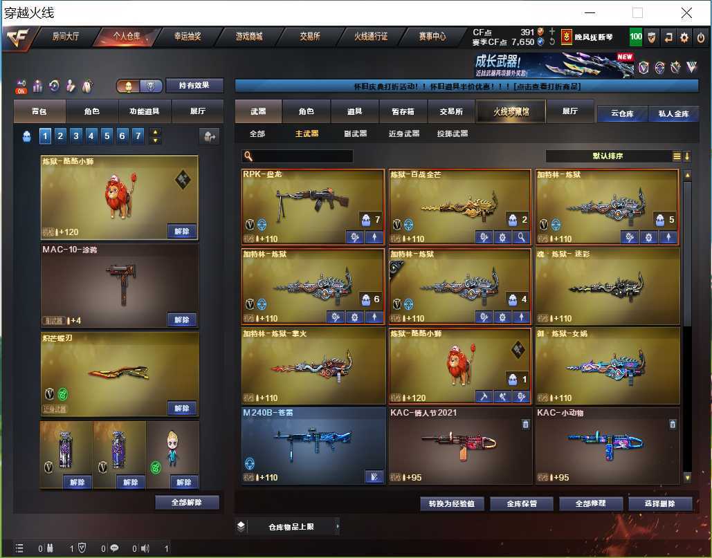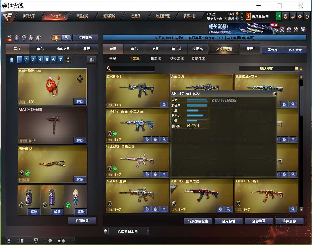 本游戏账号:英雄武器60个; 王者武器4个。 装备不多,但是主武器、副武器、近身武器够用 拥有完美游戏体验。重要的是,特殊装备有:麒麟刺、M200-幻神、AK47-火麒麟、黑骑士-海王、加特林-炼狱、王者之武-觉醒版、王者之势-觉醒版、炫金毁灭、堕天使、生化弹匣、等,随意畅选。