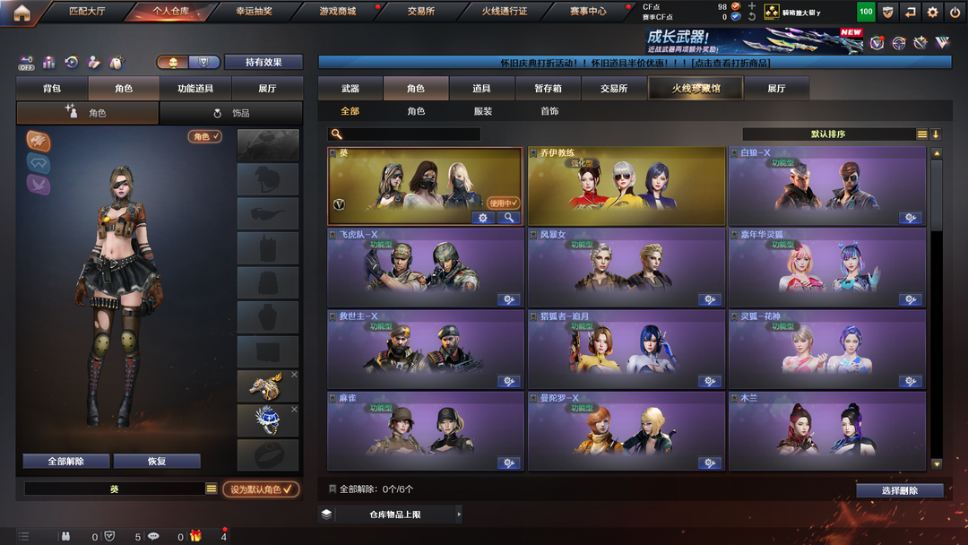 :葵;猎狐者;刀锋;复仇者;堕天使;陈龙野-X;陈龙野-Y;救世复仇;救世主;灵狐者;王力宏;救世主-X;青霞仙子;妲己;白狼-X;紫霞;麻雀;代号:翼;超能特工;风暴女;灵狐-花神;木兰;嘉年华灵狐;猎狐者-追月;猎狐者-X;斯沃特精英