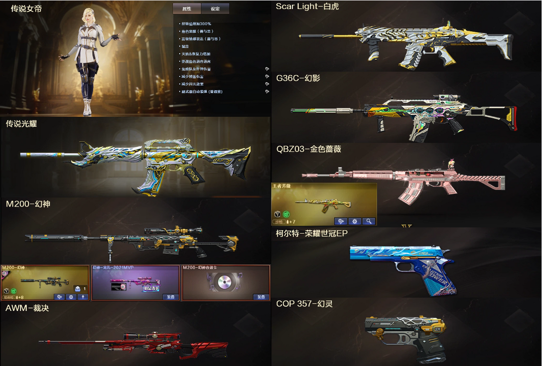 传说女帝4防✅幻神宠儿音效卡+裁决✅QBZ蔷薇芳薇白虎G36C幻影青龙+柯尔特COP✅4防貂蝉