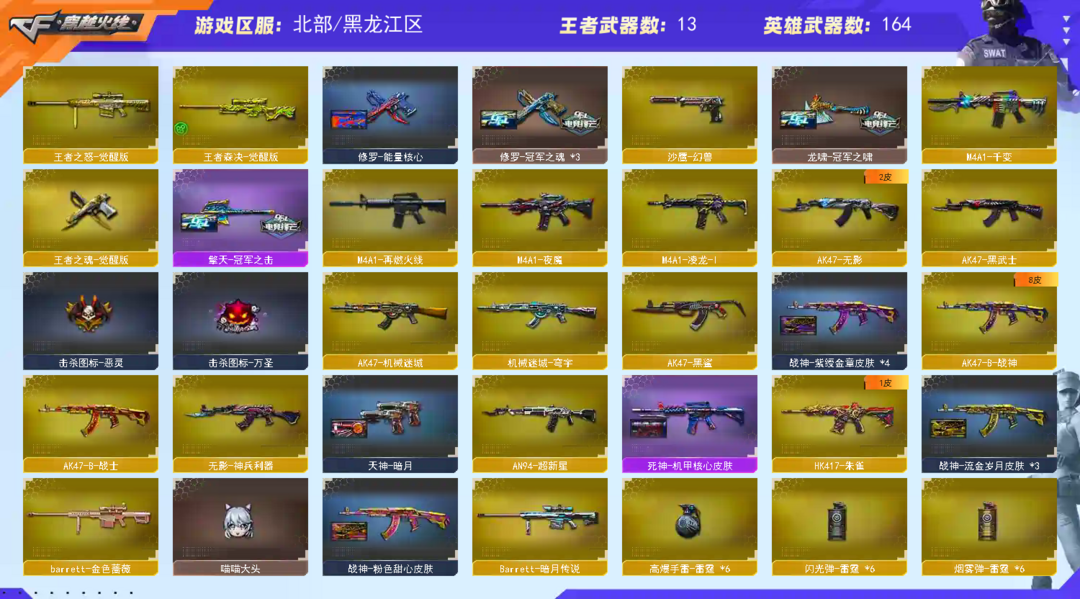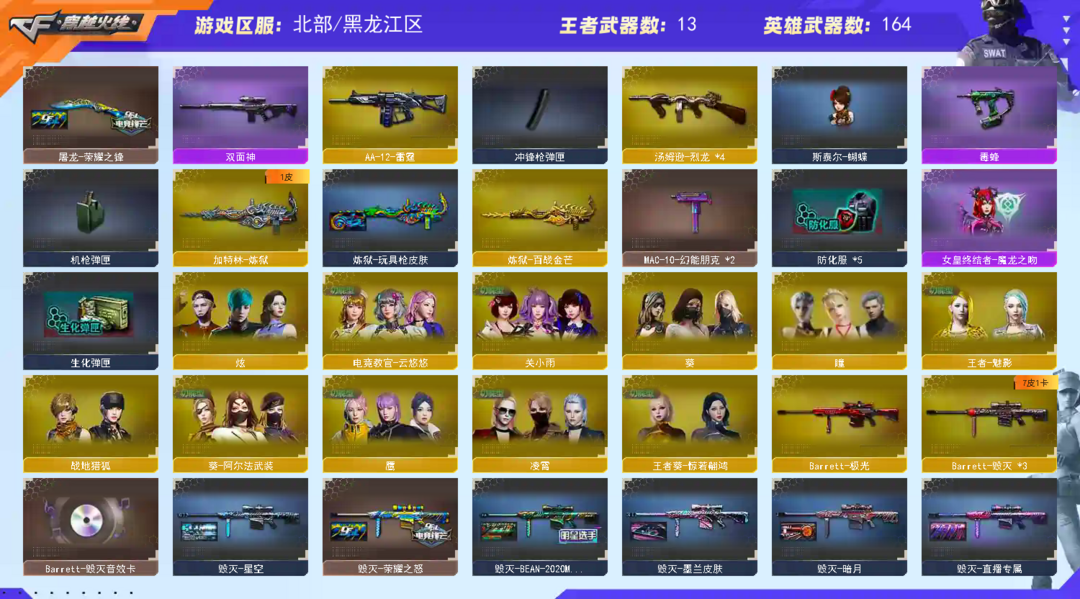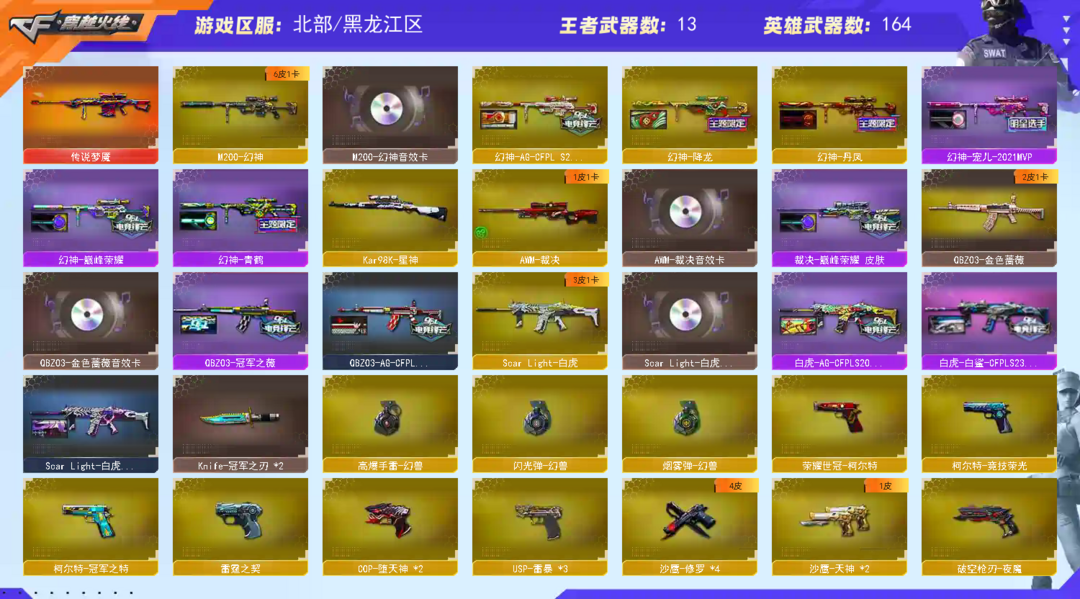 78豆【北部】幻兽+幻神宠儿6皮幻音+冠特薇刃+usp3柯尔特3cop3+裁决套+星神+白虎套蔷薇套
