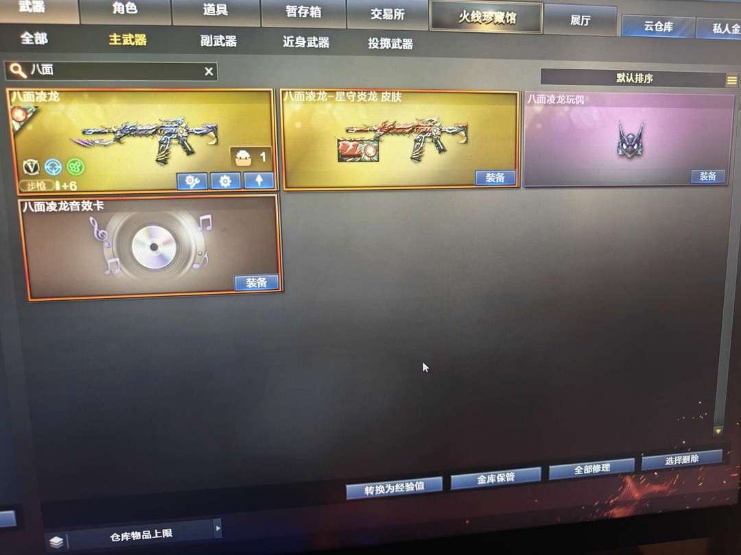 神威莲华/生化全装/八面玲珑带皮音效卡/蝴蝶刀/炼狱金狮/斯太尔小枪/6盘6烈/挑战6黑满配服饰玩偶
