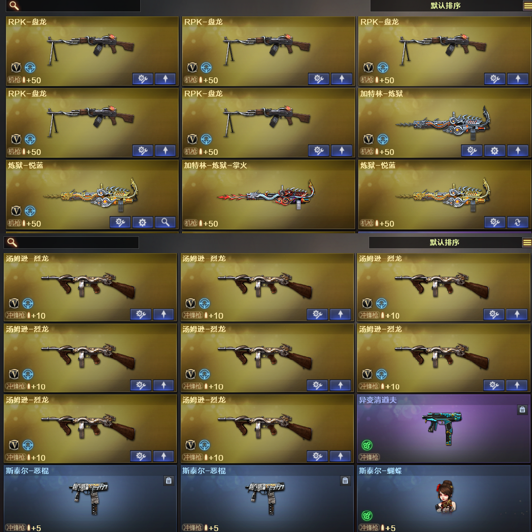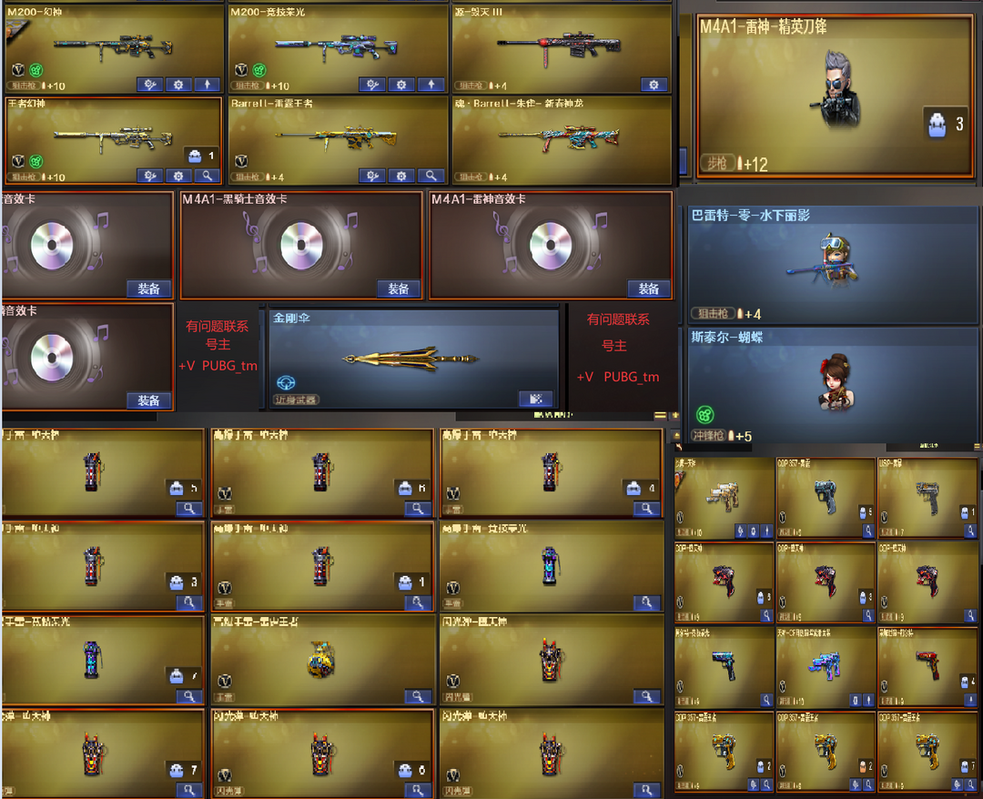 王者武器:王者之锋-觉醒版;王者之武-觉醒版;王者炎心-觉醒版;炼狱-悦蓝-觉醒版;COP 357-雷霆王者-觉醒版;高爆手雷-雷霆王者;雷霆王者之锋-觉醒版;M4A1-雷霆王者-觉醒版;Barrett-雷霆王者-觉醒版;烟雾弹-雷霆王者-觉醒版;闪光弹-雷霆王者-觉醒版;高爆手雷-雷霆王者;王者幻神-觉醒版;炫金毁灭;王者之心-觉醒版;王者之锋;炫金骑士;王者之魂;王者之啸-觉醒版;王者之魄-觉醒版;炫金雷神;王者之武;炼狱-悦蓝;王者之怒;王者之戮