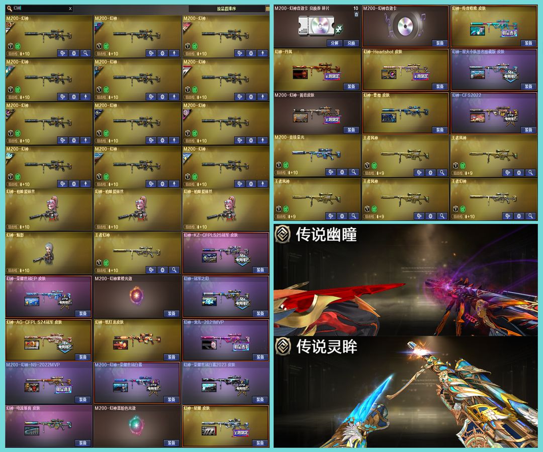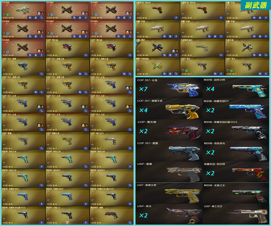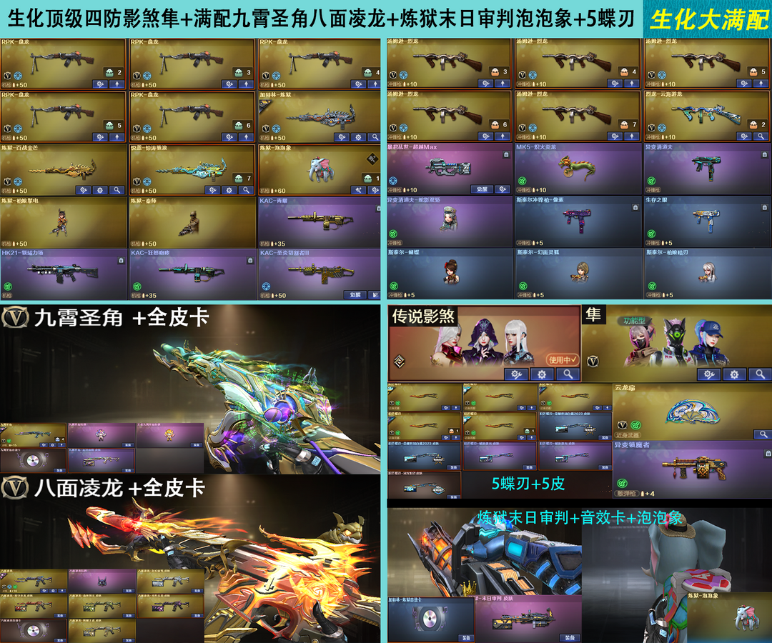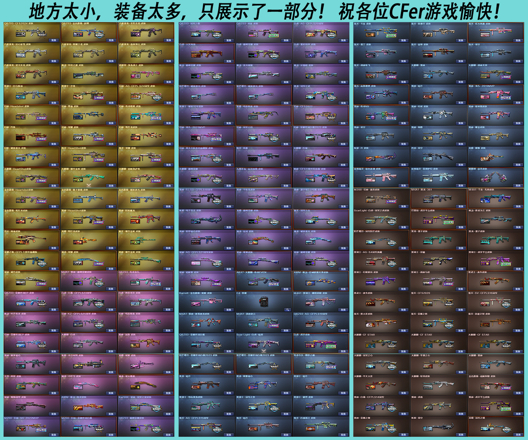 【传说星骇,传说影煞,传说辉光,传说夜影,传说灵眸,传说幽瞳,传说破晓,传说幽冥,八面凌龙,九霄圣角】炽芒蝶刃冠军炽芒,炽芒蝶刃破浪逐光,炽芒蝶刃荣耀世冠白鲨2023,雷神CFPL十周年臻藏,FAMASG2天戎,加利尔ACE天袭,G36C幻影,幻影破浪逐光,幻神奇幻迎春吉狮,幻神KZCFPLS25冠军,幻神荣耀世冠EP,幻神AGCFPLS24冠军,幻神荣耀世冠白鲨2023,幻神星耀,幻神传奇欧欧,幻神Heartshot,幻神星火小队签名臻藏版,幻神宠儿,幻神冠军之幻,王者风神,王者幻神,星神黯钢战甲,星神傲竹金蛇,星神巅峰荣耀,星神AG,星神冠军之星,星神破竹,白虎白鲨CFPLS23冠军,白虎巅峰荣耀,白虎虎牙,白虎AG,白虎冠军之虎,白虎大汉风骨,女团全套,QBZ03传奇宠儿,QBZ03荣耀世冠EP,QBZ03虎鱼,QBZ03冠军之薇,柯尔特冠军之特,柯尔特荣耀世冠EP,柯尔特荣耀世冠白鲨,柯尔特无冕之王,USP冥王,USP雷暴王者 ,COP357云龙,COP357雷霆王者,COP357堕天神。炼狱泡泡象,炼狱末日审判,炽火炎龙,VSK94金蚀。生化满配,挑战满配,爆破全装满配