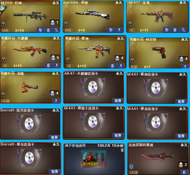 幻神冠军之幻,世冠全套《雷神火麒麟柯尔特龙啸》98K-星神,火麒麟-传奇EVEN,黑骑士-地狱火,王者冰魄,M200-幻神,HK417-朱雀,雷神白鲨冠军,毁灭AG冠军,冠军之心之怒之势之魄之啸,火麒麟雷神毁灭极光黑龙黑骑士全音效卡,王者-貂蝉-魅影全四防,CFS2020-毁灭,荣耀之魄之锋两把,CFS2018火麒麟毁灭修罗三把套,AG虎将霓裳传奇KG白鲨,星空全套耀金全套CFS2017全套,雷神刀锋-曼陀罗,堕天神全套:M4A1堕天神,COP-堕天神三个,巴雷特-零-水下丽影两个,龙啸堕天神,麒麟刺堕天神两个,迷迭香,手雷闪光烟雾堕天神六个。雷霆四套:炫,M37葵,M4A1-雷霆,barrett-雷霆,COP357-雷霆,尼泊尔-雷霆,巨龙,高爆手雷闪光雷烟雾雷霆四个,暗月传说,猩红,审判者小红玩偶,贵族富豪名片,边框-守护,高爆麒麟,闪光白虎。升级王者之幻之锋之击,炫金毁灭两把天龙修罗两把,王者之心之戮之魄五把之影之武之光两把之力之怒三把之锋三把,6烈龙6盘龙3炼狱死亡之眼迷你生化手雷前进包生化全装,180步30狙25副30刀爆破全装,双全装玩偶万化皮肤光效。