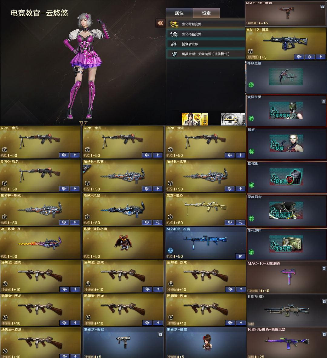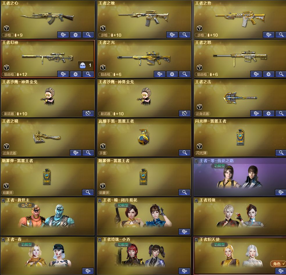 【装备道具】:世冠白鲨幻神★qbz荣耀世冠白鲨★宠儿幻神★动感闪耀幻神★黄忠幻神★幻神音效卡★炽芒蝶刃★传说艾莉莎★传说夜影★晴雅★QBZ嘉年华柯基动物园★USP嘉年华柯基★猫猫COP★王者幻神★98K星神★星神音效卡★兰巾帼★USP神工套★竞技荣光套云悠悠★全音效卡★AG冠军白虎★AG冠军qbz蔷薇★USP雷暴★王者炽天使★裁决音效卡★幻神音效卡★qbz音效卡★白虎音效卡★雷神音效卡★毁灭音效卡★火麒麟音效卡★黑骑士音效卡★黑龙音效卡★宠儿雷神★世冠闪耀雷神★虎将雷神★火麒麟大唐荣光★火麒麟传奇EVEN★火麒麟华夏之心★火麒麟轻羽★绿豆毁灭皮肤★冠军之势★黑龙冠军之武★冠军之怒★星空毁灭★虎将雷神★荣耀之锋★王者玲珑★王者小乔★王者春★王者救世主★觉醒王者之光★王者沙鹰-神勇金戈★王者瞳★7烈龙★6盘龙炼狱★斯泰尔蝴蝶★迷你小钢★生化背包变更★捕食者★生化角色变更★佣兵觉醒手斧镜减速雷★不退包★生化弹夹防化服变异宝贝死亡之眼对讲机不退包★佣兵觉醒无需换弹手斧镜减速雷★捕食者之眼查看血量