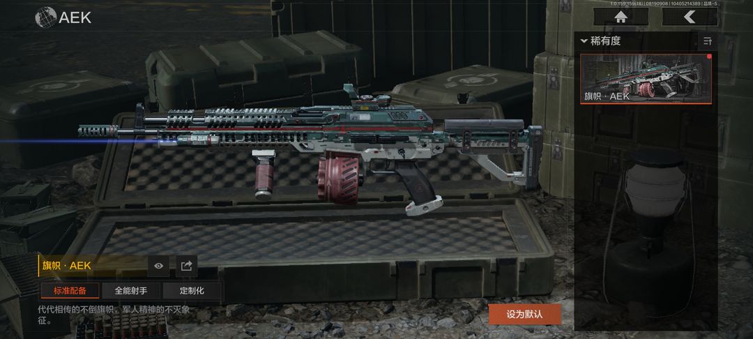 30级,历史最高段位:暗区传说【近战武器】:涂鸦利刃,明刀绣春 ,三尺万仞战术剑,工兵铲,来战开山刀;【手套】:玉鸾挂枝手套;【角色皮肤】:都护铁衣战术甲胄,不败坚守作战服黑金指挥官作战服,苏梅克制式服;【突击步枪】:火力倾泻AKM,缟兵玄墨AKM,来战AKM,德尔塔小队M4A1,骑士之剑M4A1,巅峰M4A1,秋宴FAL,真实之眼FAL,蓝色咆哮H416,自喷网格H416,涂鸦AK102,来战AK74N,竞技数码AK74N,白狼连队AK74N,山地伪装AK74N,坚守AKS74U,火力倾泻AUG,竞技AUG,火绒草AUG,自喷网格AUG,炎夏浪花AR57,涂绘猎人AR57,骑士之剑ACE31,湖冰倒影ACE31,旗帜AEK,盛冬AN94,绿松石数码Groza,武侍FAMAS,森林迷彩T951,绿松石数码T951,林地数码T03,玄戈梨花T03,缟兵玄墨T03,北国内卫AK1207式林地迷彩,绿松石数码9A91;【冲锋枪】:火力倾泻MP5,湖冰倒影MP5,龙威MP5,森林迷彩MP5,涂鸦MPX,玄戈梨花MPX,缟兵玄墨MPX,灰鼠幻歌P90,滑雪季UMP45,自喷网格UMP45,禁止访
