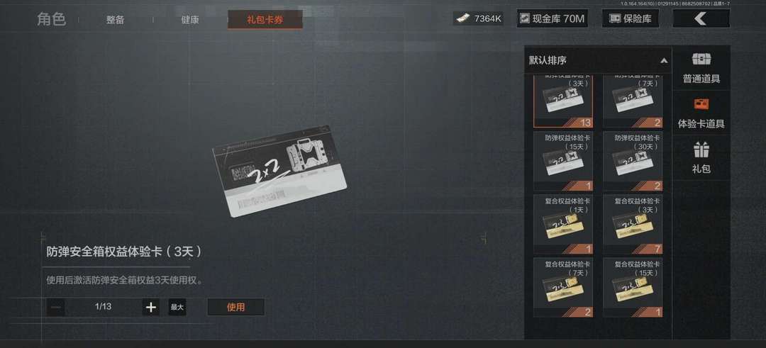 绣春刀,有六格体验卡(管够的),纯币7000多万,还有100多个大金(可卖)