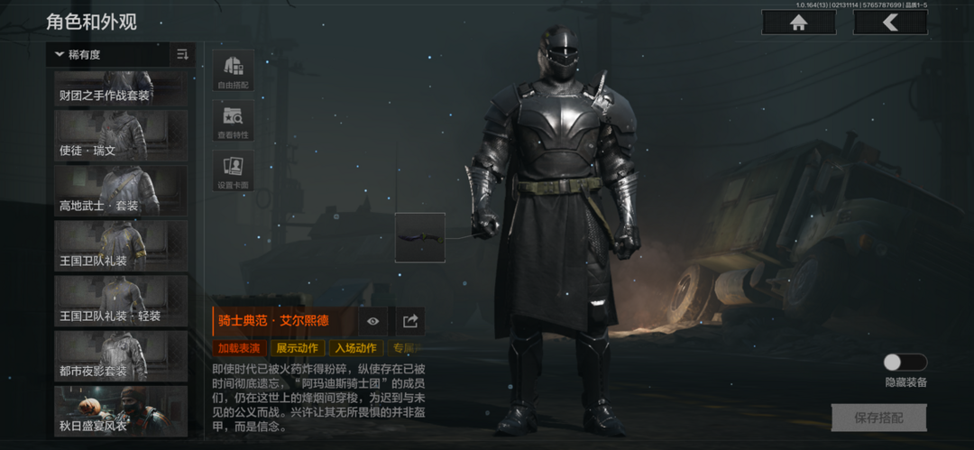 历史最高段位:暗区传说【角色皮肤】:骑士典范艾尔西德,使徒欧瑞恩,和平先锋作战套装,财团之手作战套装,使徒瑞文,高地武士套装,王国卫队礼装,王国卫队礼装轻装,都市夜影套装,秋日盛宴风衣;【近战武器】:苍穹利爪,急袭弯刀,工兵铲;【手套】:急袭手套;【突击步枪】:包络战术AKM,火力倾泻AKM,猩红抓痕AKM,坚守AKM,和平先锋AKM,逆火玄石AKM,骑士之剑AKM,幻域莎绫M4A1,潜渊蛇鳞M4A1,竞技FAL,和平之手FAL,秋宴FAL,玄墨披挂MDR,调色盘MDR,北国内卫MDR,竞技MDR,利齿风暴MDR,洞窟遗迹AK102,调色盘AK102,玄墨披挂AK102,棱光裂变AK102,白狼连队AK74N,战术大师AK74N,包络战术AK74N,竞技数码AK74N,最后防线AKS74U,竞技AUG,火力倾泻AUG,告丧夜曲AUG,醒目提示F2000,钢铁真理F2000,非富即贵F2000,炎夏浪花AR57,财团之手AR57,起火点AR57,动感舞步ACE31,竹绿电晶ACE31,骑士之剑ACE31,旗帜AEK,最后防线AEK,北国内卫AN94,起火点AN94,粉绒臻选AN94,近卫