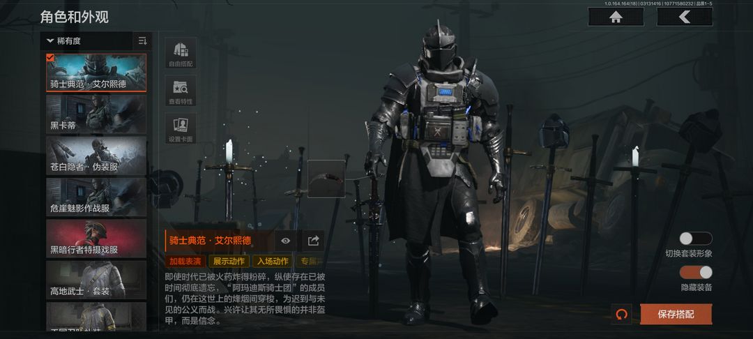 30级,历史最高段位:区传说【角色皮肤】:骑士典范艾尔熙德,苍白隐者伪装服,危崖魅影作战服,黑暗行者特摄戏服,鎏金街头套装,都市夜影套装,万众狂欢套装,【近战武器】:寒牙手刺,旧日主宰,下弦月,贝利亚黄昏,工兵铲,来战开山刀;【手套】:禁忌力量手套,【突击步枪】:包络战术AKM,午夜梦FAL,蓝色咆哮H416,落者H416,浮鳞影青QBZ192,骑士之剑AKM,来战AKM,深暗星云M4A1,竞技M4A1,竞技MDR,逆火MDR,自喷网格H416,鱼跃丹青AK102,棱光裂变AK102,白垩游魂AK102,涂鸦AK102,火力倾泻AUG,极恶AUG,伦琴计量AK74N,光裂变AK74N,雪原凌锋AK74N,来战AK74N,山地伪装AK74N,钢铁真理F2000,雪山之王F2000,危崖敌影F2000,炎夏浪花AR57,涂绘猎人AR57,无声暗月AR57,棱光裂变ACE31,湖冰倒影ACE31,白垩游魂ACE31,最后防线AEK,暴虐AEK,骑士之剑Groza,骑士之剑T03,彻甲铜斑T03;【冲锋枪】:湖冰倒影MP5,骤羽尖啸MPX,雪山之王MPX,灰鼠幻歌P90,星云火花P90,禁止访